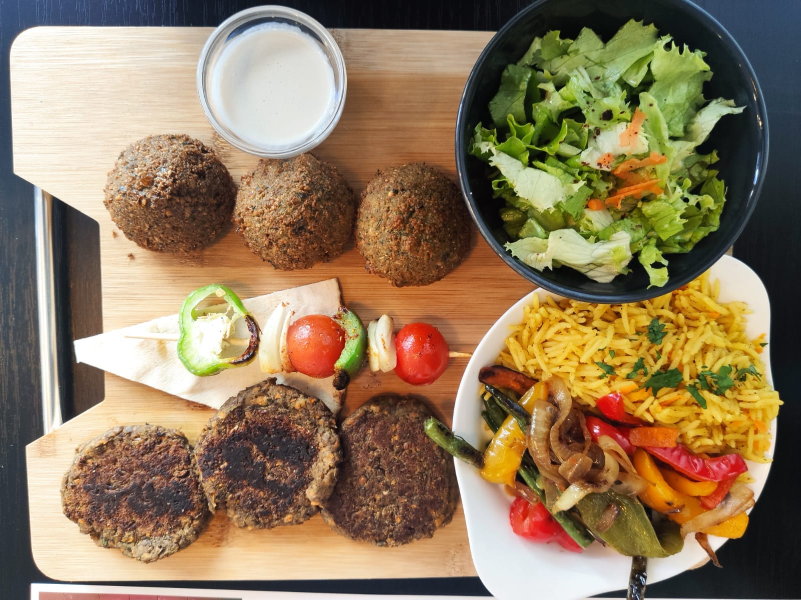 Trop cher pour ce qui est servi. Frites pas assez cuites, brochettes de légumes trop peu fournies. Les falafels étaient bons. Les galettes de lentilles manquaient de saveur.