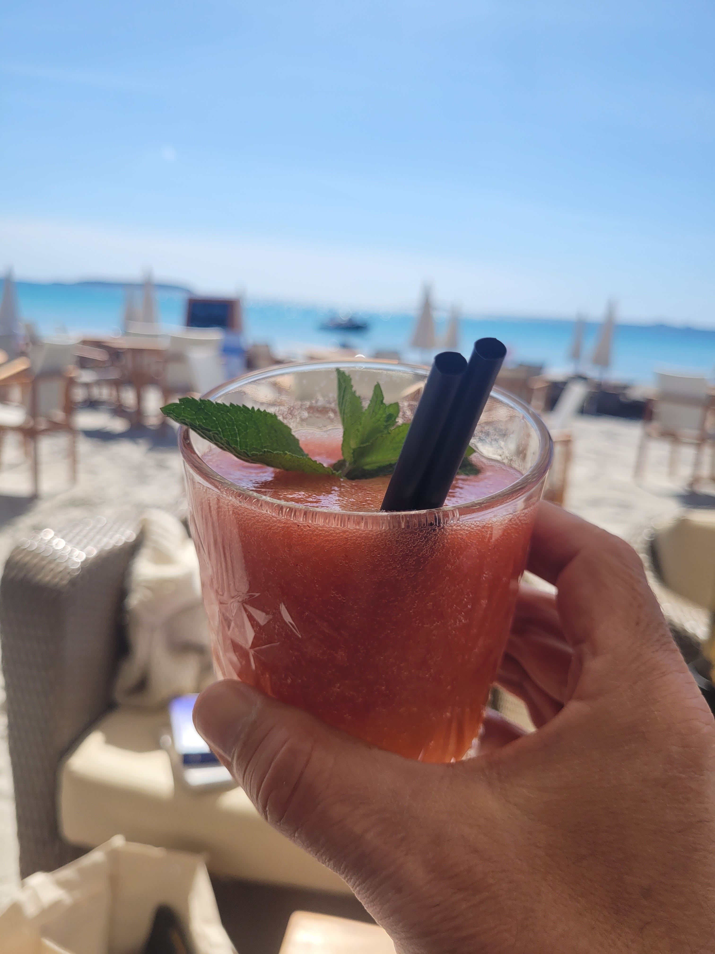 Super cocktail mes pieds dans le sable avec cette vue magnifique. Le personnel et le lieu sont tellement agréables!