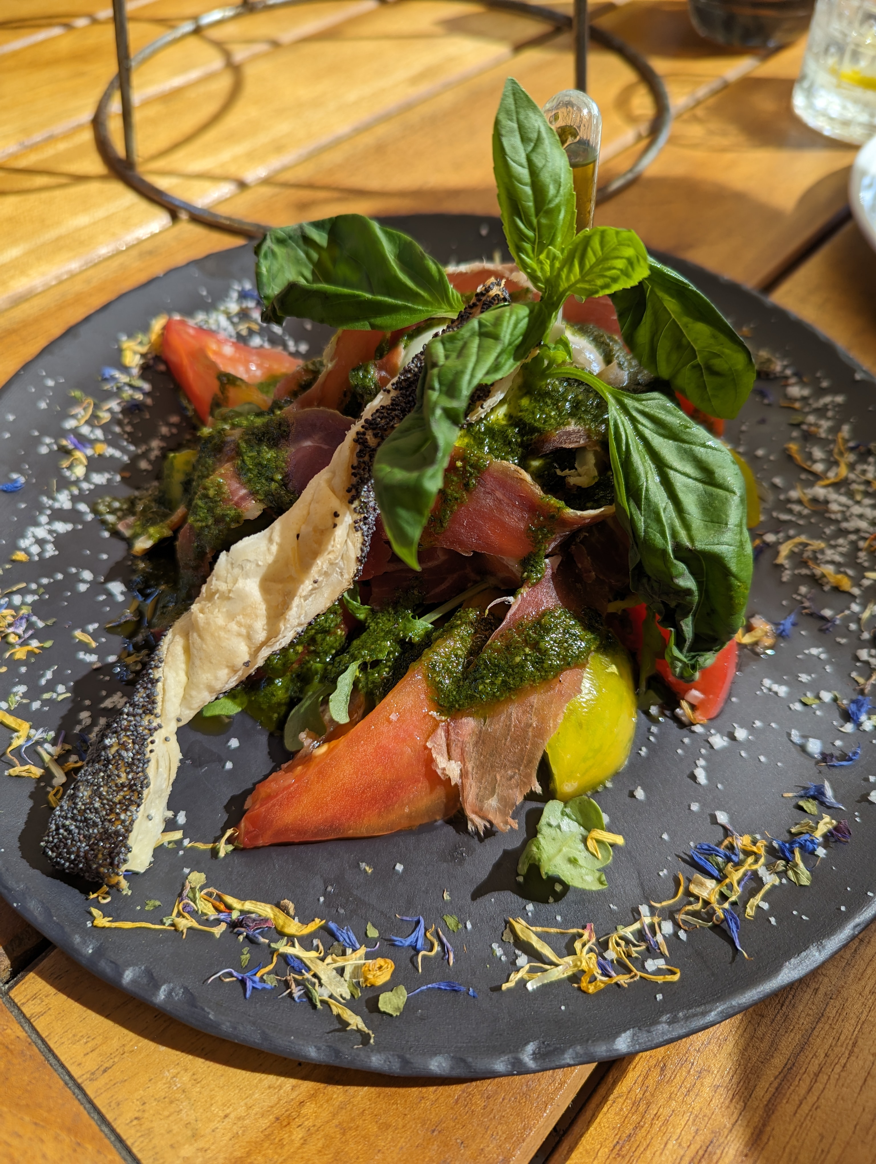 Un agréable moment dans un cadre magnifique. Nous avons pris la planche de charcuterie qui s’est avérée très copieuse pour deux personnes. Néanmoins, je ne pense pas que ce soit réellement des vrais produits locaux. Les autres plats proposés avaient l’air bon et copieux. Cet établissement était presque complet donc il ne faut pas hésiter à réserver. Le service est en conséquent un peu lent. Je recommanderai plus cet établissement pour boire un verre face à la mer.