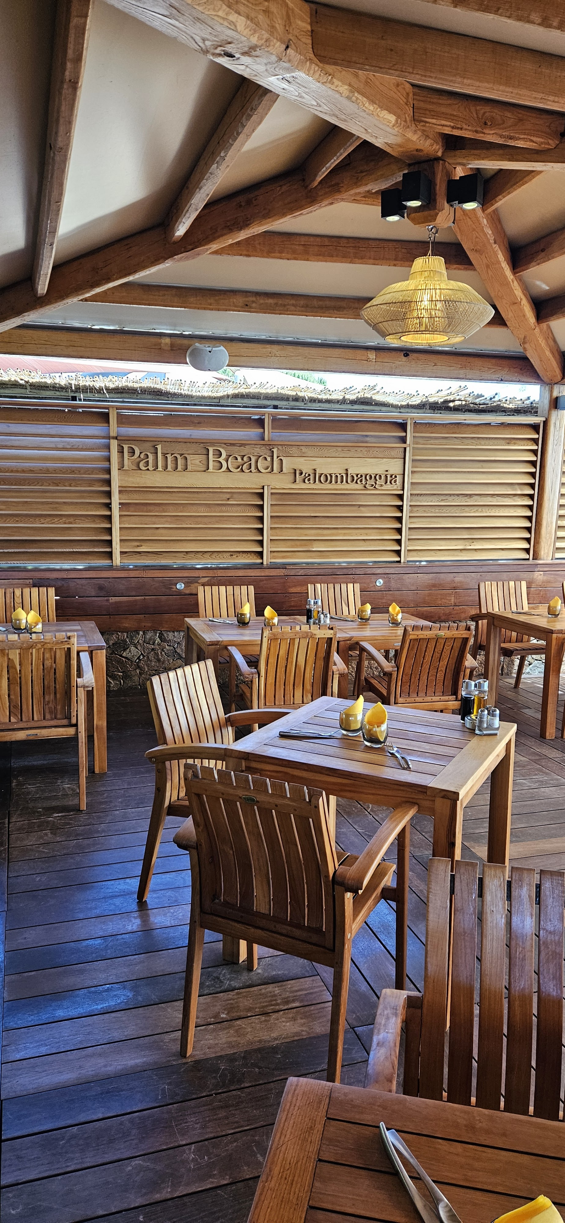 Restaurant sur la plage, le petit-déjeuner ne présente pas un grand intérêt ni un bon rapport qualité-prix (et c'est bien dommage). Par contre au déjeuner ou au dîner, face à la magnifique plage de Palombaggia, c'est un régal. Assiettes soignées, produits frais, cuissons parfaites (important sur poissons et fruits de mer), avec en prime un petit Limoncello offert par la maison, qui permet d'envisager la sieste avec sérénité.