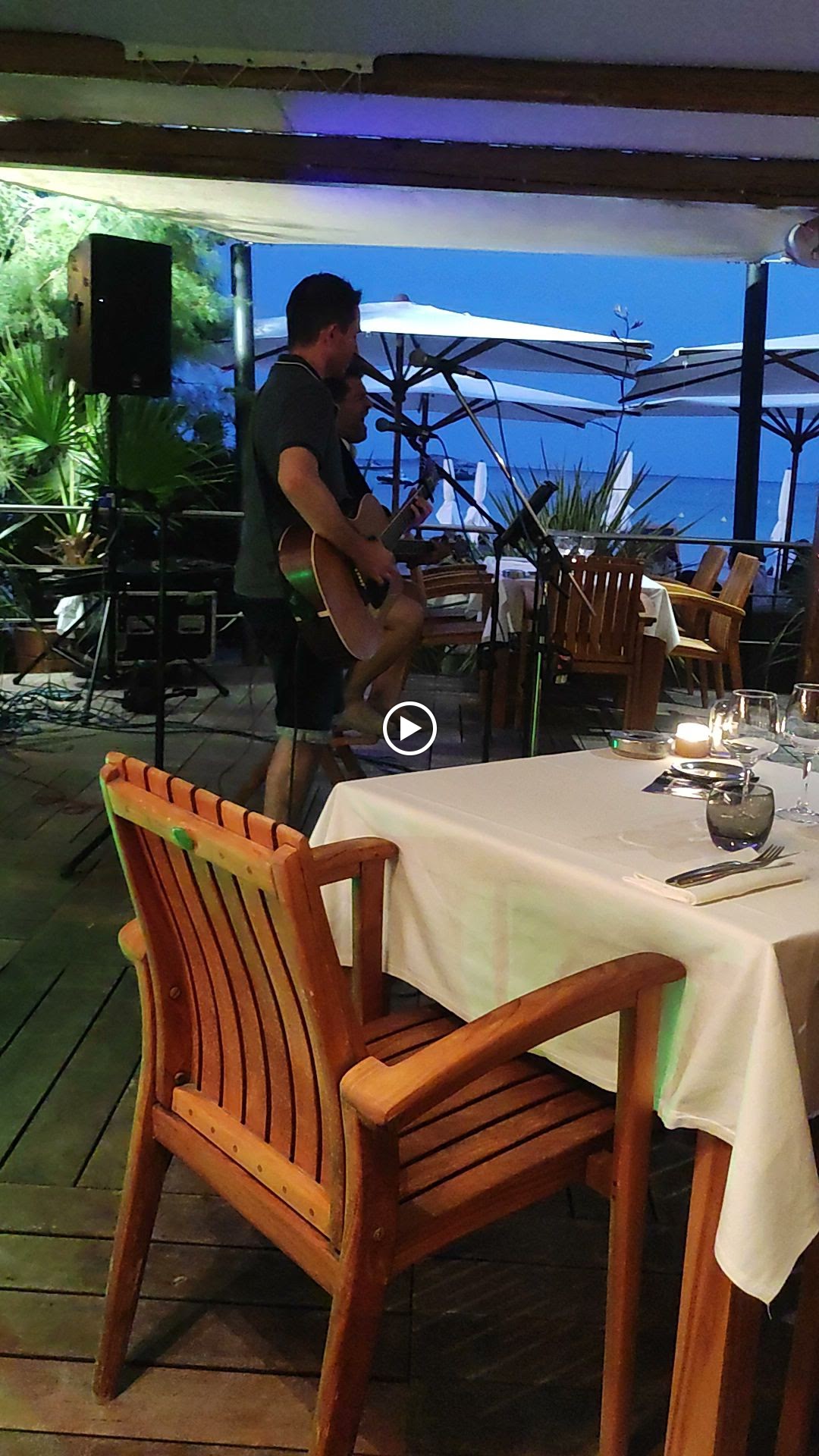 Le lieu est très jolie, la nourriture est bonne (malgré que ce soit industriel) la planche de tapas à partager est très copieuse et varié, pizzas bonne également. Le seul point négatif est les transats sur le côté du restaurant nous aurions dû réserver pour en avoir devant car nous n’avons pas la vue sur la mer et collé à un stand de jet ski donc assez bruyant… Sinon très bon moment