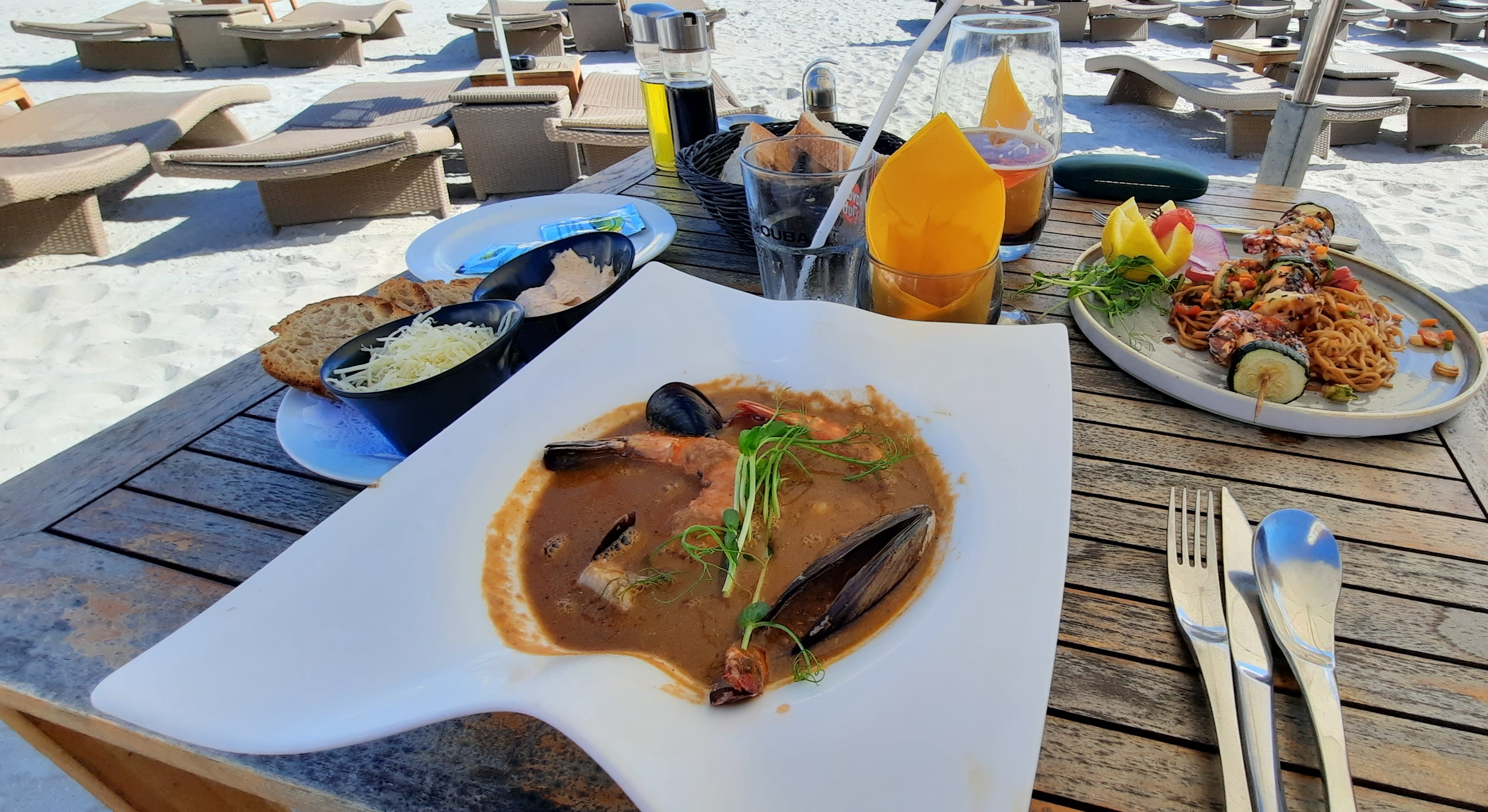 Des plats de qualités et frais sans exception. Un service au top et très professionnel. Un moment agréable passé sur les transats au bord de l’eau, un plagiste attentif au besoin des clients. Je recommandes.