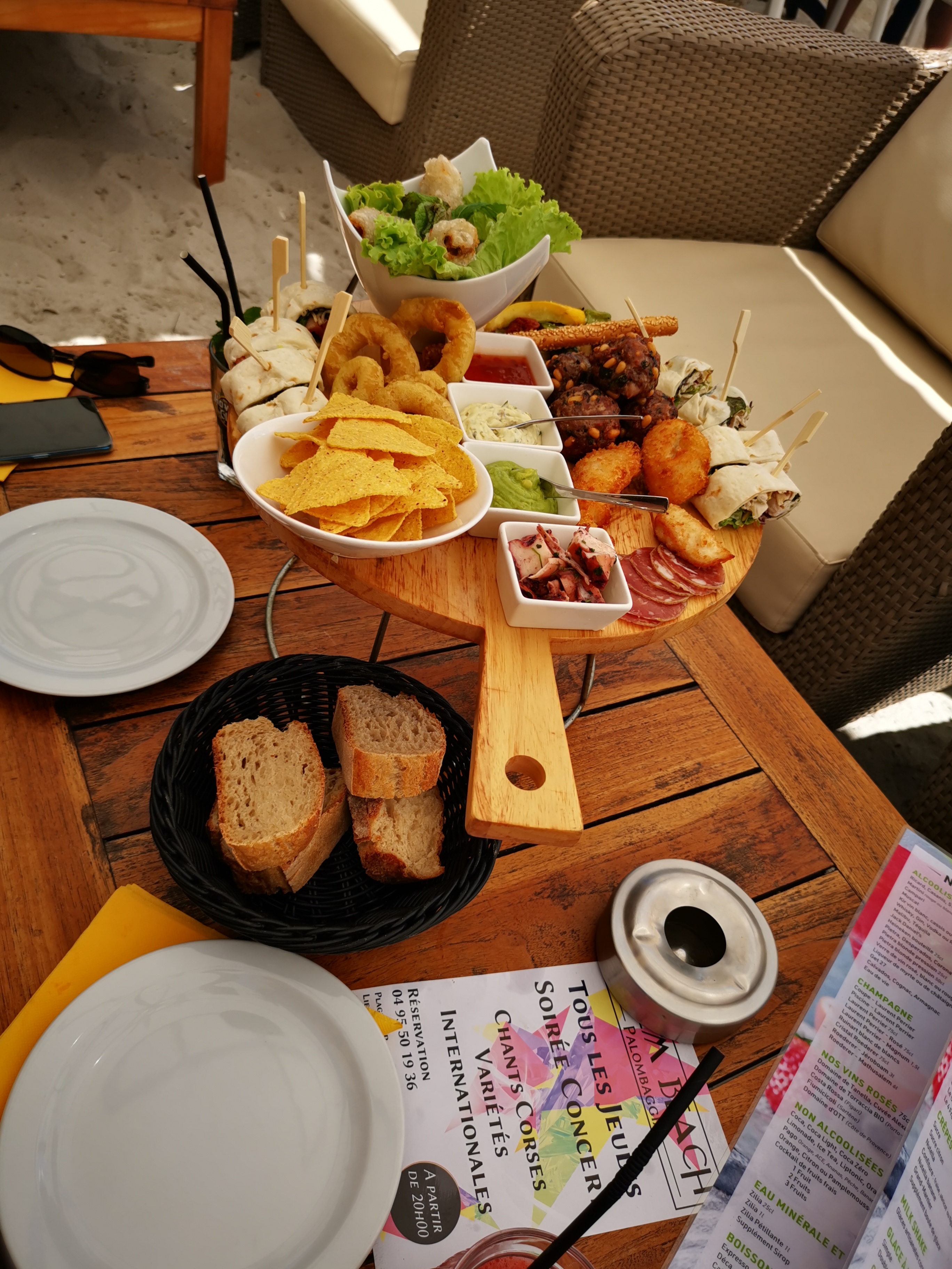Restaurant en bord de l'une des plages les plus renommées. On y va sans certitude car parfois cela révèle de mauvaises surprises. Et bien que cette soirée fut des plus agréables. Par son lieu déjà une table les pieds dans le sable génial. Le repas délicieux avec un choix varié. Une ambiance Corse avec un concert le jeudi soir et un très bon service. Une belle découverte.