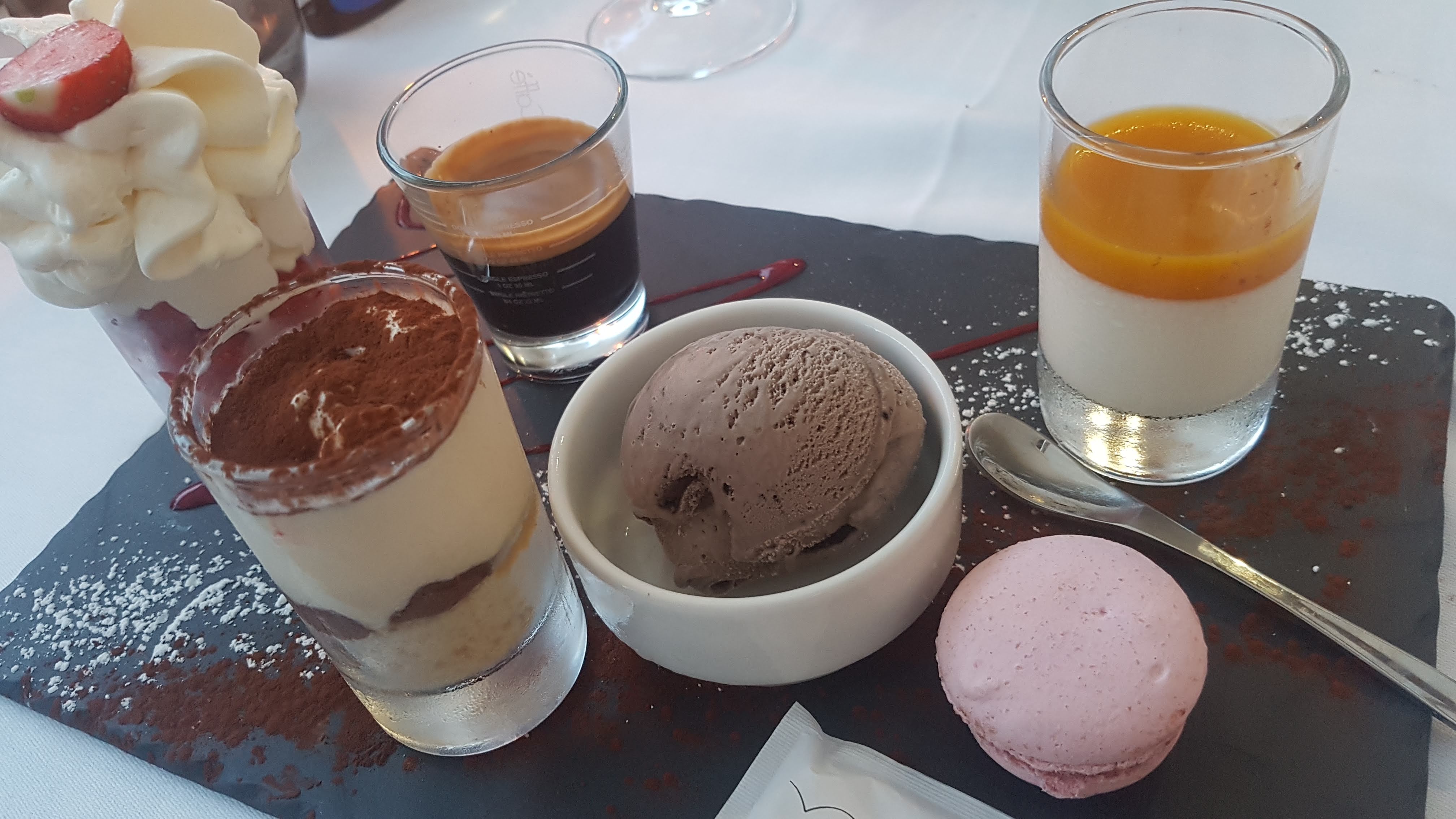 Soirée dans un cadre idyllique au Palm Beach les pieds dans le sable Avec une note particulière pour les desserts, du goût, un visuel et une présentation surprenante dans un tel établissement.