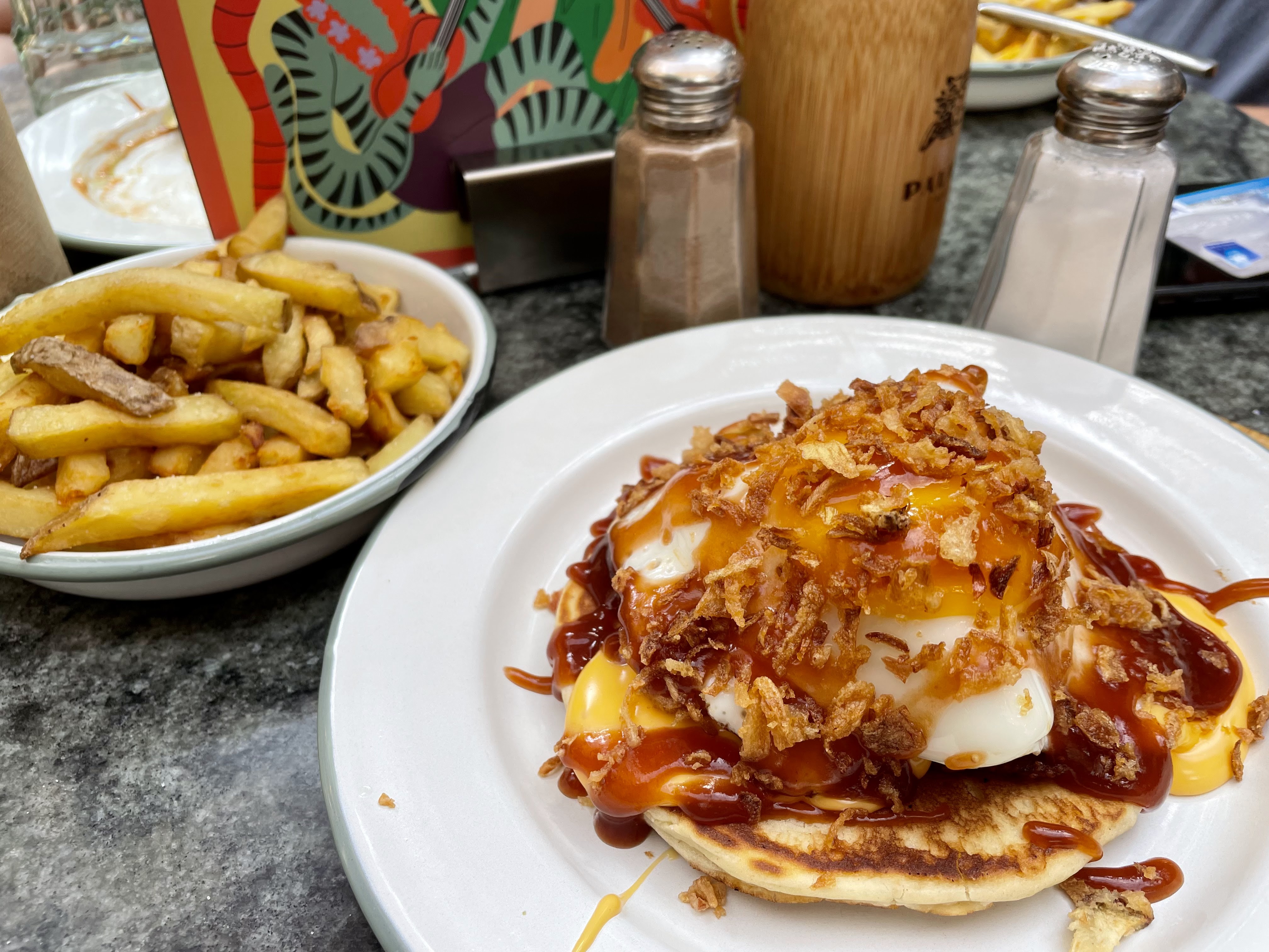 Concept très intéressant. Commandes depuis l'application pratique. Les enfants peuvent manger leur Burger / frites (très bonnes d'ailleur) et les mamans faire plus Light (Poke vegan, avocado toast...). Les pancake sont très bons que ce soit versions burger ou desserts. On reviendra ! Et en plus on a un cash back fidélité. Serveurs sympa et rapides. Toilettes propres.