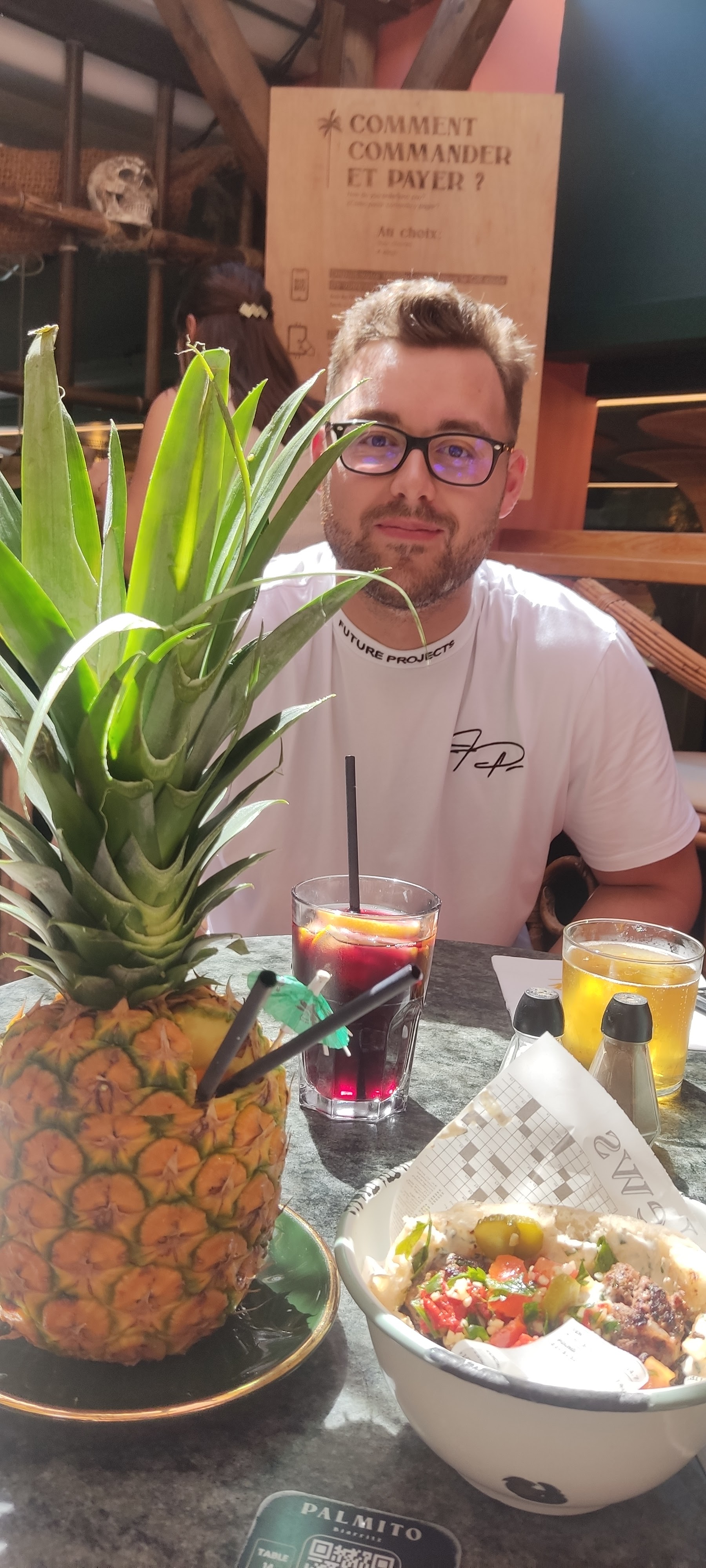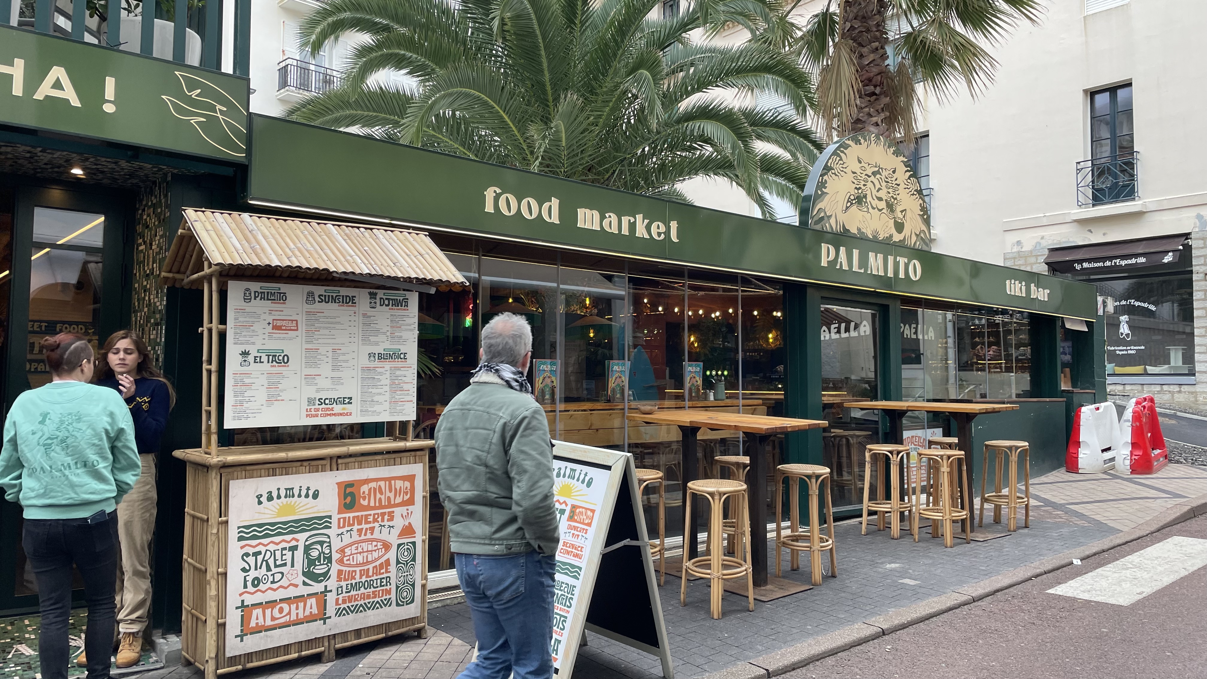 Top découverte !! Dans une petite rue près de la mer, la devanture vous appellera ! Un concept originale et moderne dans un cadre qui vous amènera près des cocotiers et des vahinés ! L’équipe est top, très souriante, aimable et réactive ce qui rend dotant plus l’expérience agréable. Les cocktails sont délicieux, rien de classique, dans des verres qui s’accordent parfaitement à la deco ! Quant au repas, que de choix ! Dans l’esprit du food market vous avez le choix de plusieurs univers différents que vous pouvez mélanger sans problème. Les plats arrivent vite et sont très gourmands ! Je vous le recommande ++, nous reviendrons !!!