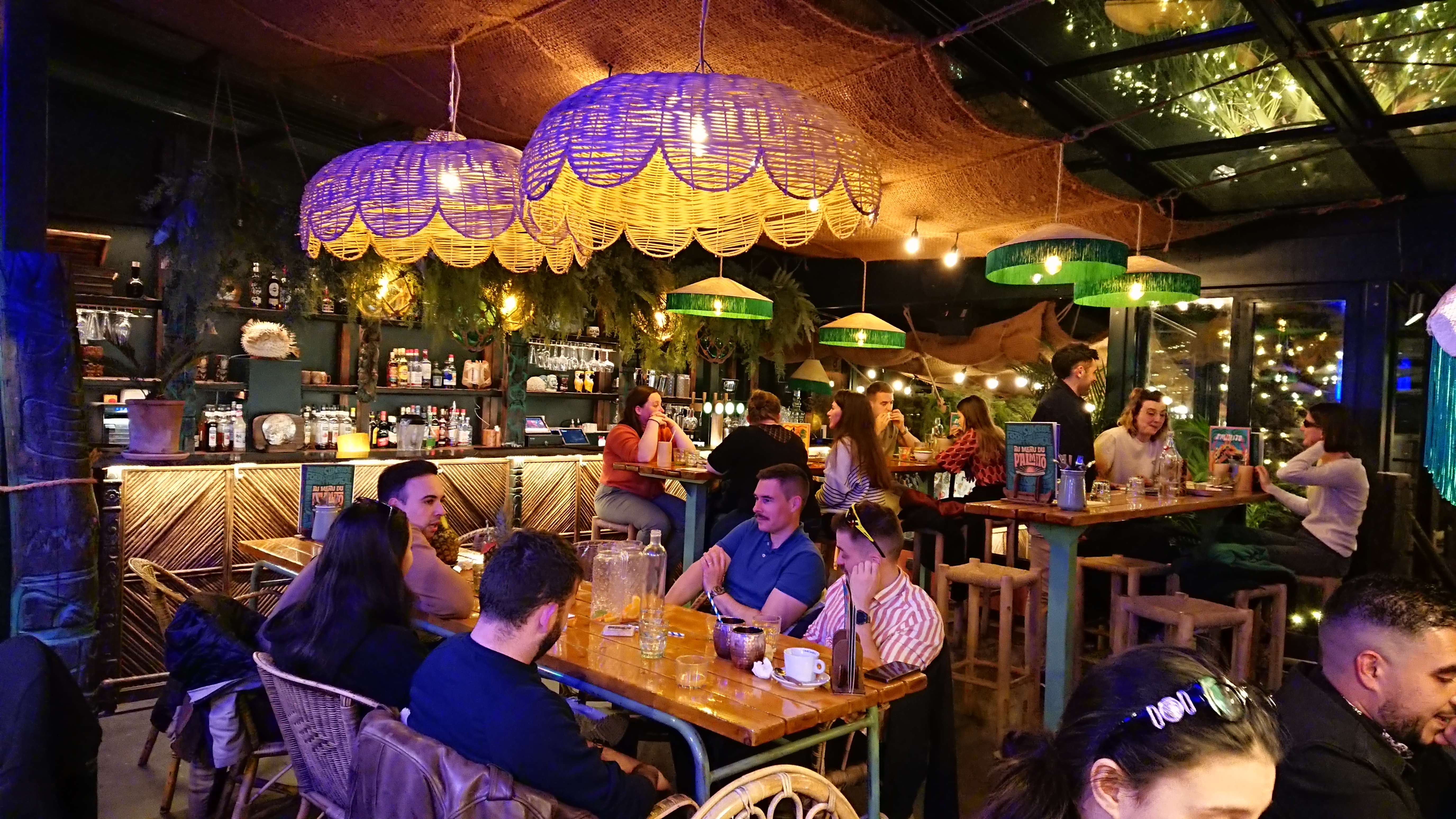 Lieu joli, belle décoration. Mais service brouillon, cocktails chers pour la quantité et la qualité (exemple Tikinator 28€ pour 2 alors que le verre est le même qu’un cocktail individuel.) Coca à la verse à 4.5€ les 40cl sans goût, pas de gaz. Sauce cheddar des nachos pas top.