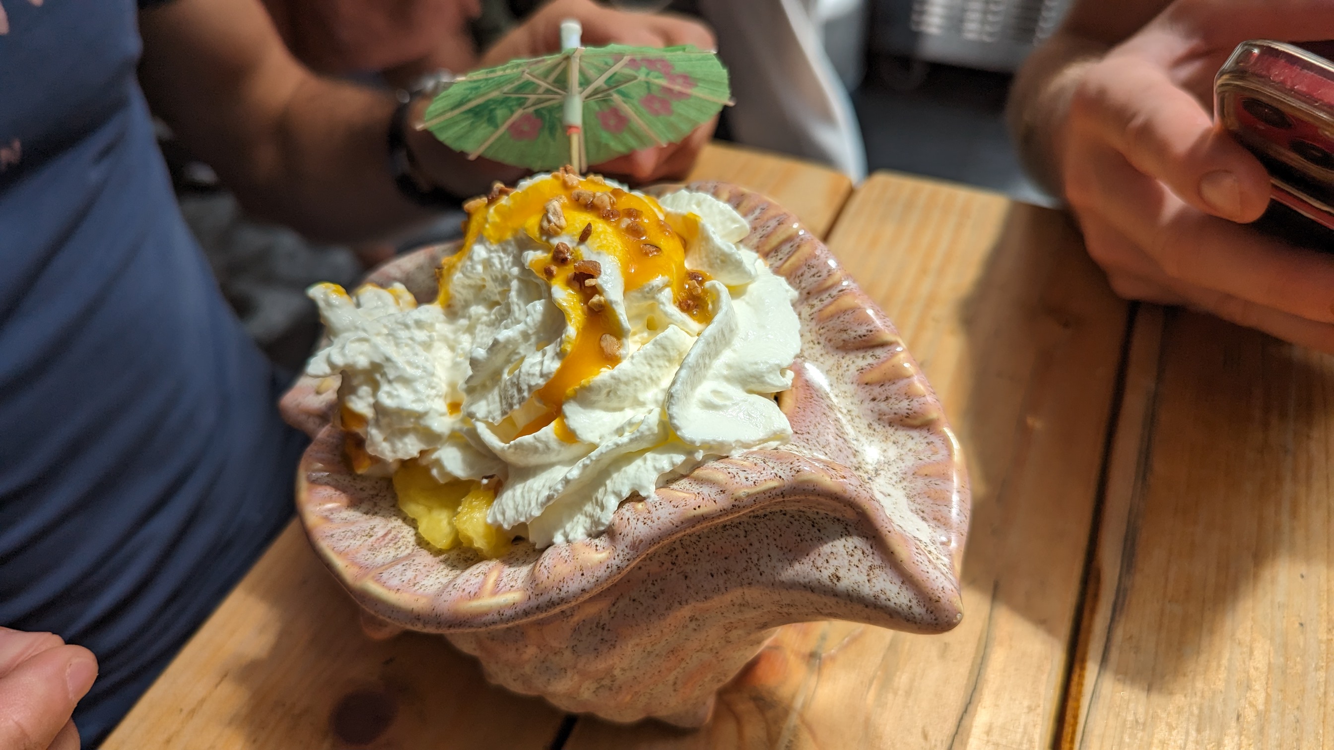 Je ne suis venu que pour les cocktails. Le bar est très sympa, dépaysant, une déco très belle. Pour les cocktails le visuel est très sympa mais le rapport qualité prix n'est pas là, dommage. Au prix demandé pour ma part je m'attendais à ressentir l'alcool du blue hawaiien shell mais que nenni. J'ai ressenti l'ananas et point barre. En gros j'ai bu un jus de fruits. Peut être que pour manger c'est différent...