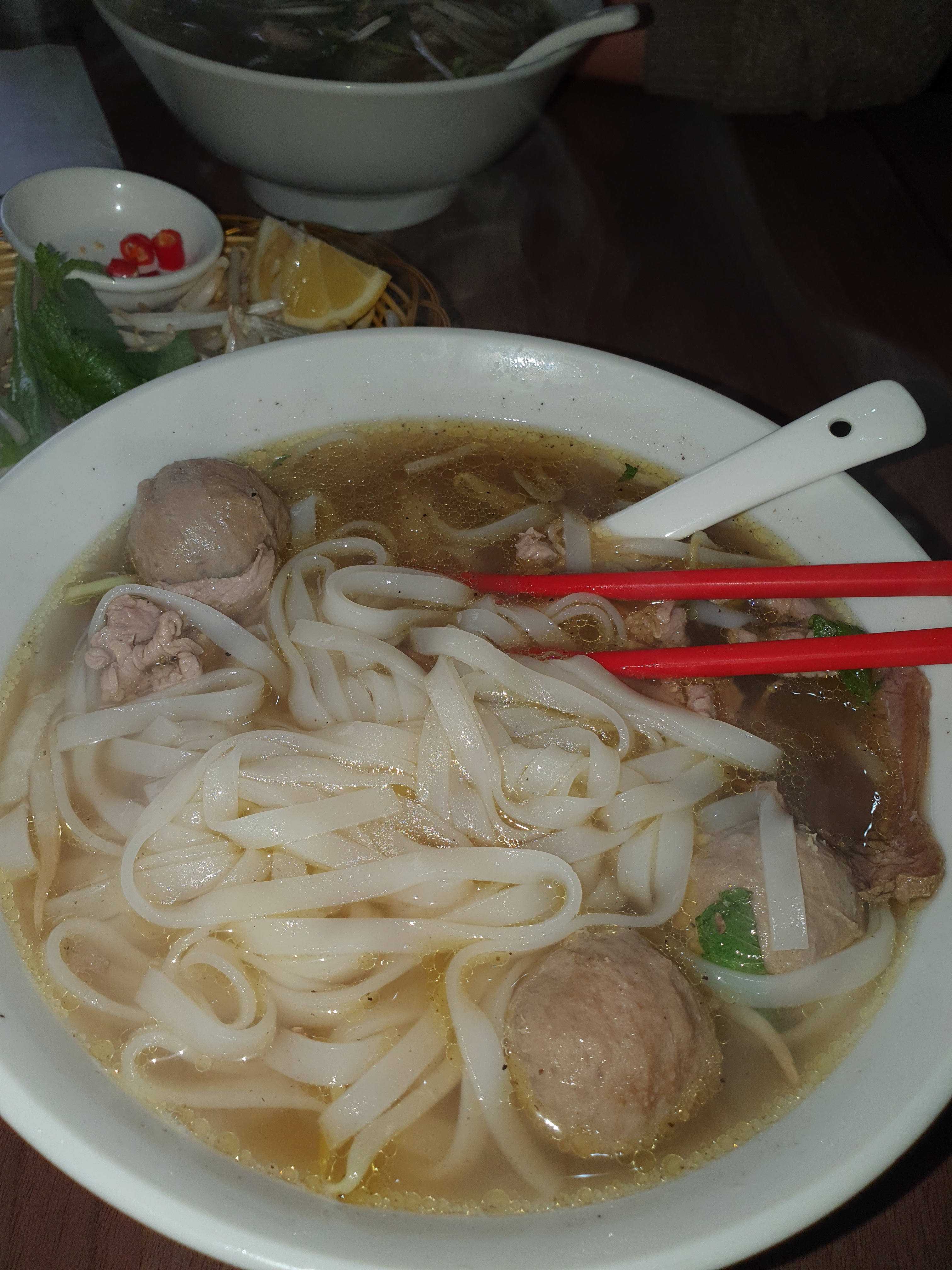 Nous avons pris des Pho avec des boulettes de viande, les portions sont généreuses et en plus c'est bon