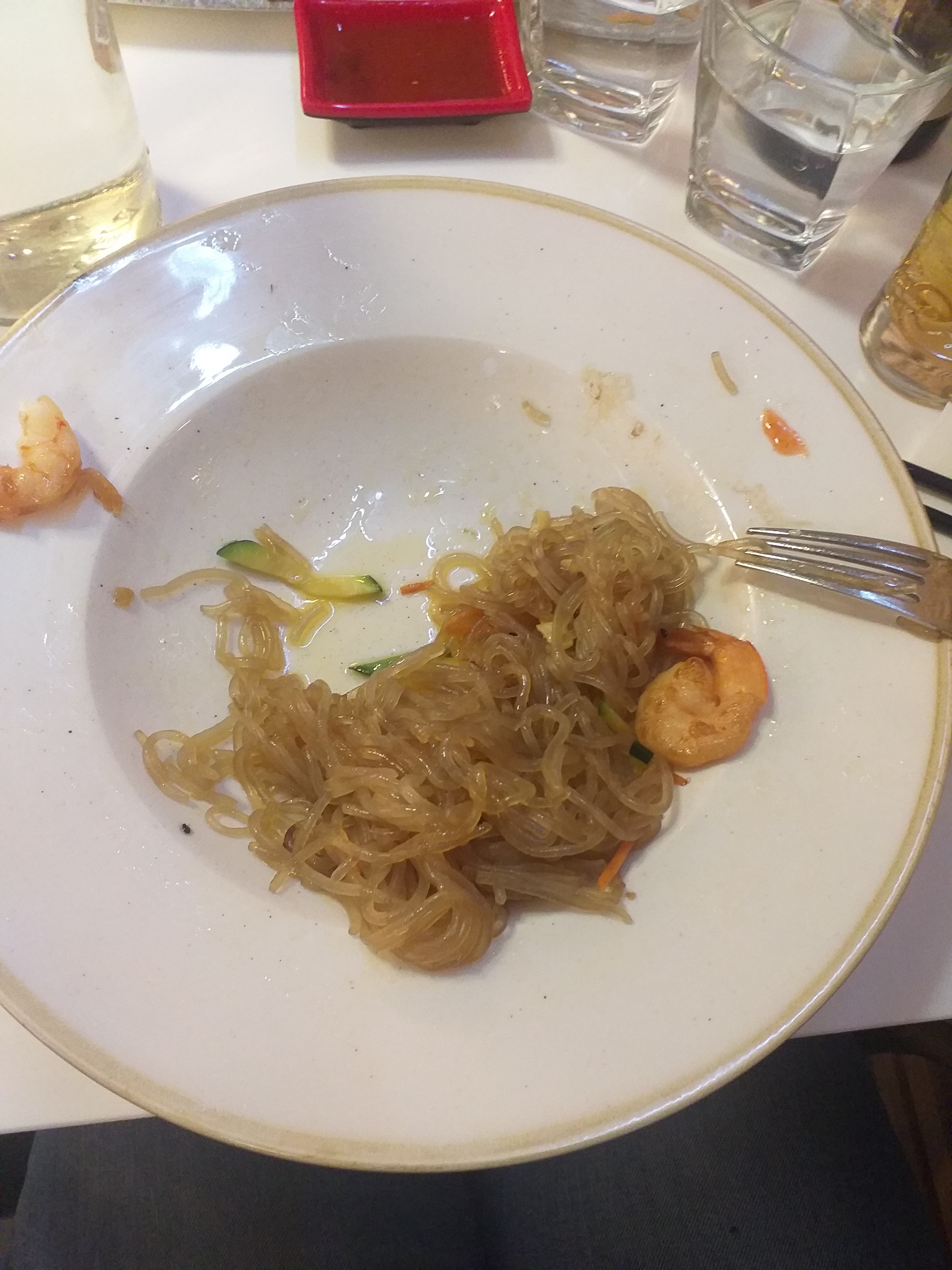 On viens de manger dans ce restaurant Aujourd'hui avec mon copain. On a pris 1 entrée et 2 plats de nouilles sautés. L'entrée est vite arrivé et etait tres bonne. Ensuite la mouvaise experience commence.. 45 minutes d'attente pour nos plats , on nous avaient oublié! Jusqu'a que un des serveurs est rendu compte qu'on attendait pendant longtemps. Et bon, parfois ça arrive de faire des erreurs, c'est humaine, mais ensuite il faut s'excuser! PERSONNE c'est excusée et aucun geste n'as etait fait , ni une petite reduction ou une boisson offerte meme , RIEN du tout pour nous avoir completement oublié! Ensuite on a reçu nos plats ... celle de mon copain est arrivée froide , la mienne (chap chae au fruits de mers) avait excactement 3 crevettes et 2 petites pieces de callamar, et UN KILO de courgetes! (photo) Bon voila , environ 40€ pour attendre 45 min pour une plat froide et une plat de nouilles avec plus de courgettes que des nouilles . Je deconseille fortement . Il y a mieux ailleurs.