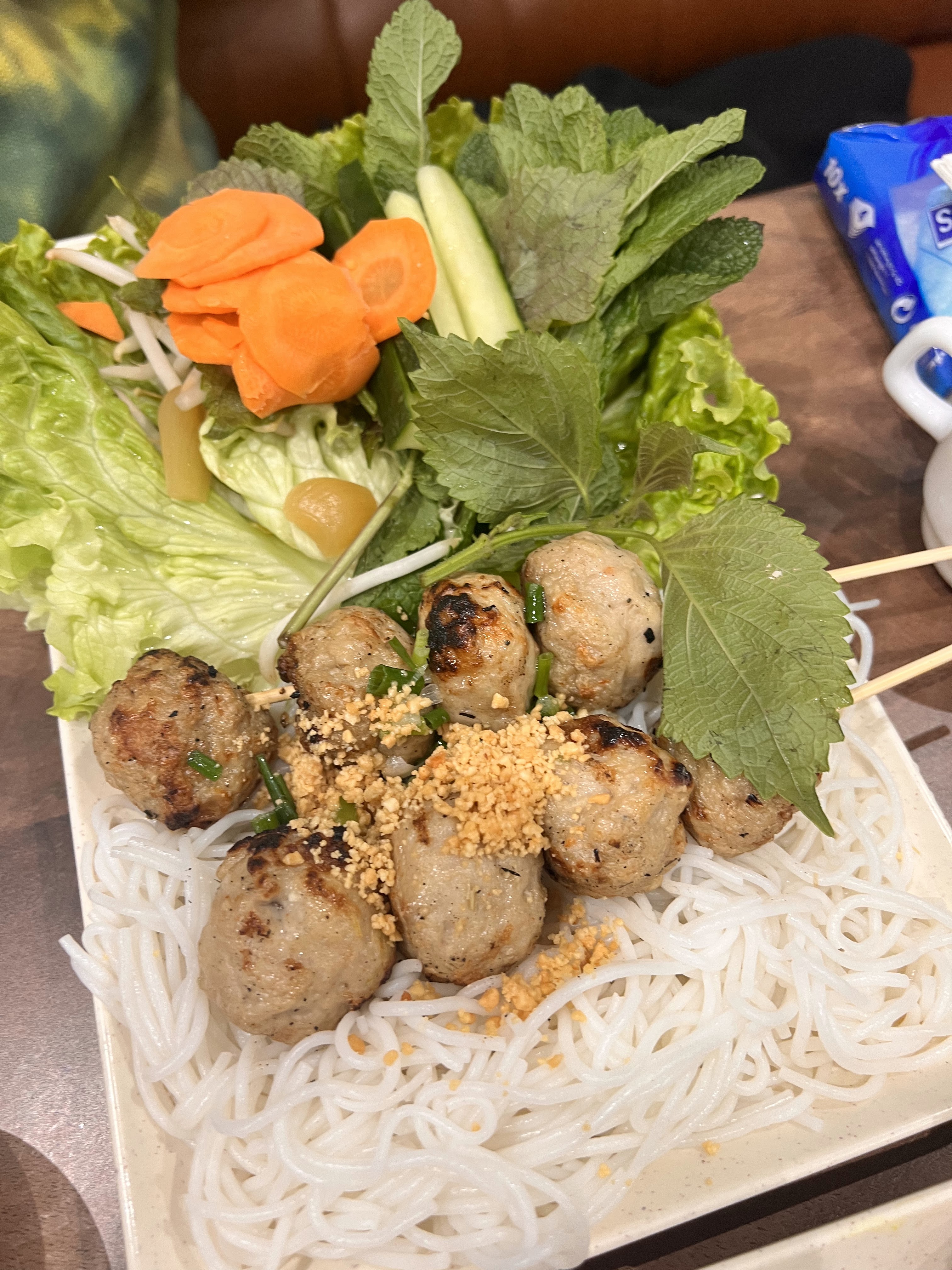 Nous avons pris les banh cuon en entrée (décevant car légèrement trop gras) puis un pho et un bobun. Les plats était bons, les aliments frais et les saveurs agréables.