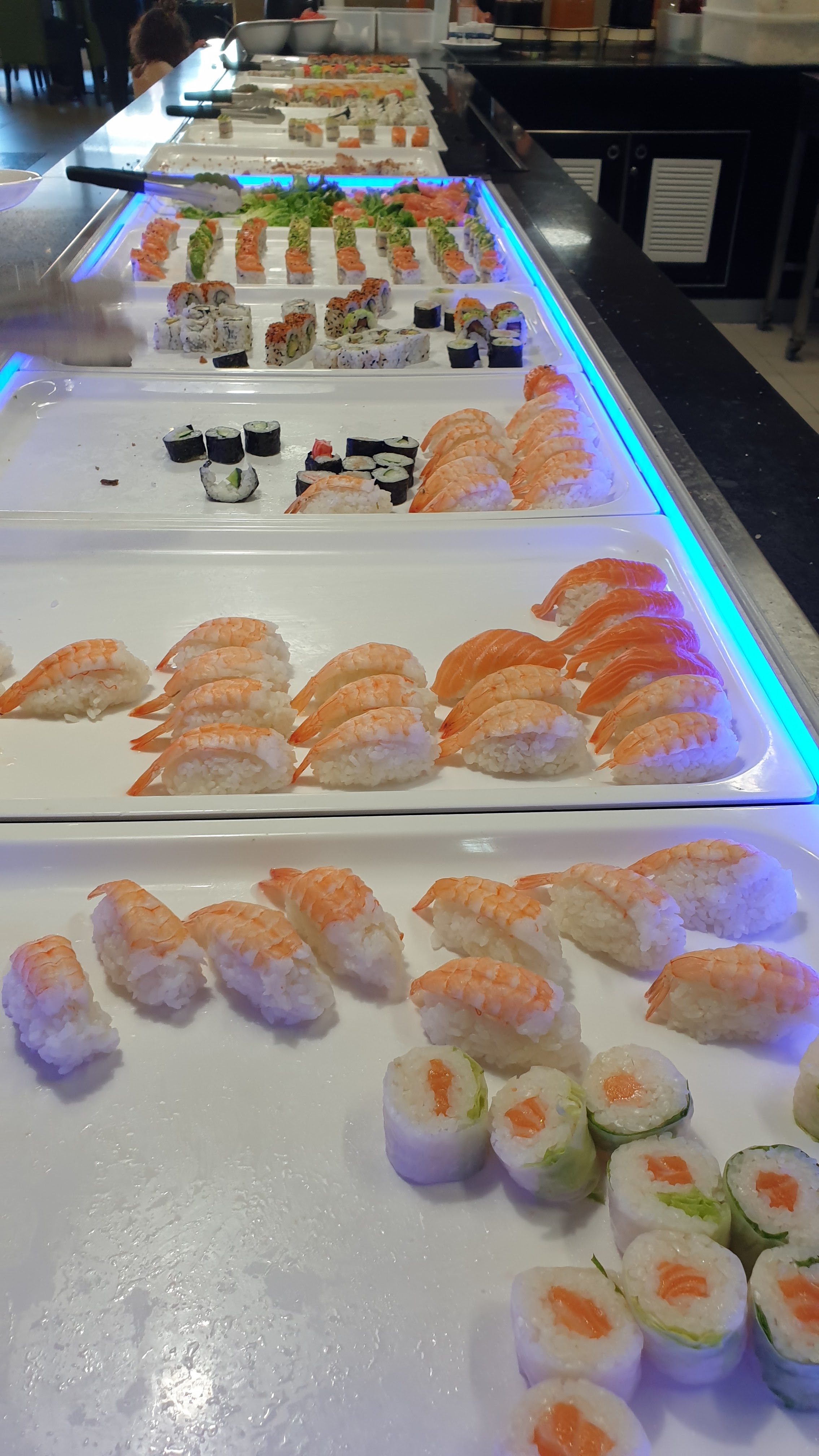 Restaurant à volonté très correct de part le choix proposé. Pour en avoir fait plusieurs, je trouve que c'est celui qui propose le plus de choses diversifiées. Entrées, plats, sushis, fromages, charcuterie, desserts, fruits... Il y en a pour tous les goûts ! La disposition est très bien, bien agencée, il est facile de se servir et de choisir. Les sushis sont délicieux. Petit bémol pour l'ambiance : très bruyant, pas beaucoup de sourires, sol qui colle sous les pieds et qui fait que les déplacements se font bien entendre. Le robot qui sert les boissons est une véritable attraction pour les enfants. Les prix sont corrects sauf pour les menus enfants où je trouve dommage de faire payer un enfant de 3-4 ans 6.90€ alors qu'il ne mange que 2 tomates et 3 bonbons... Privilégiez d'arriver tôt pour avoir plus de choix. Pour nous, nous préférons faire quelques kilomètres de plus pour y venir comparé à certaines autres anciennes moins fournies et un peu moins bonnes à notre goût.