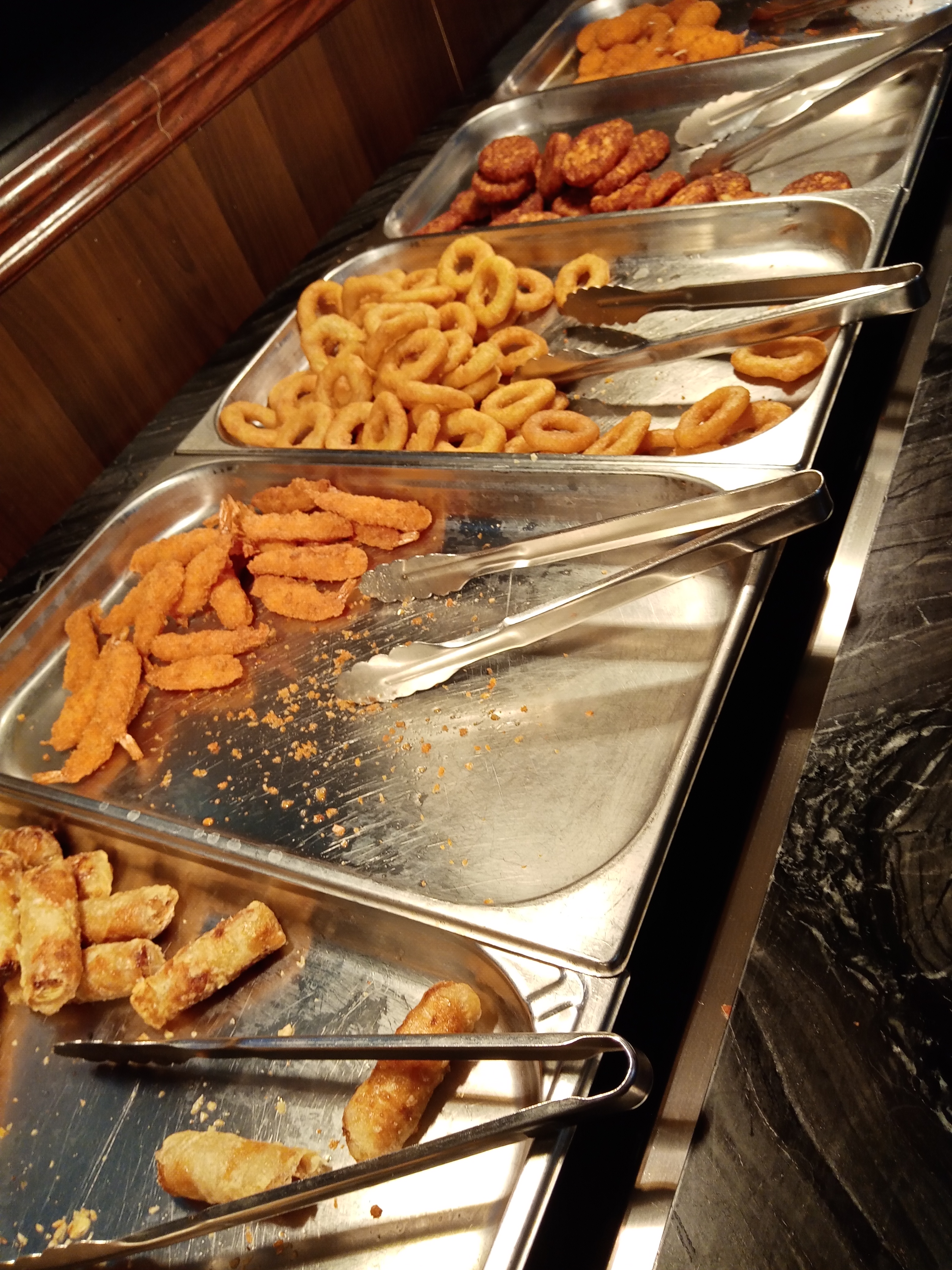 Coutumière de ce type de restaurant dont mon fils raffole, je dois avouer avoir été assez impressionné par le large choix des mets, ingrédients sucrés ou salés. Petite déception sur les beignets qui ont été trop exposés à la lampe chauffante …