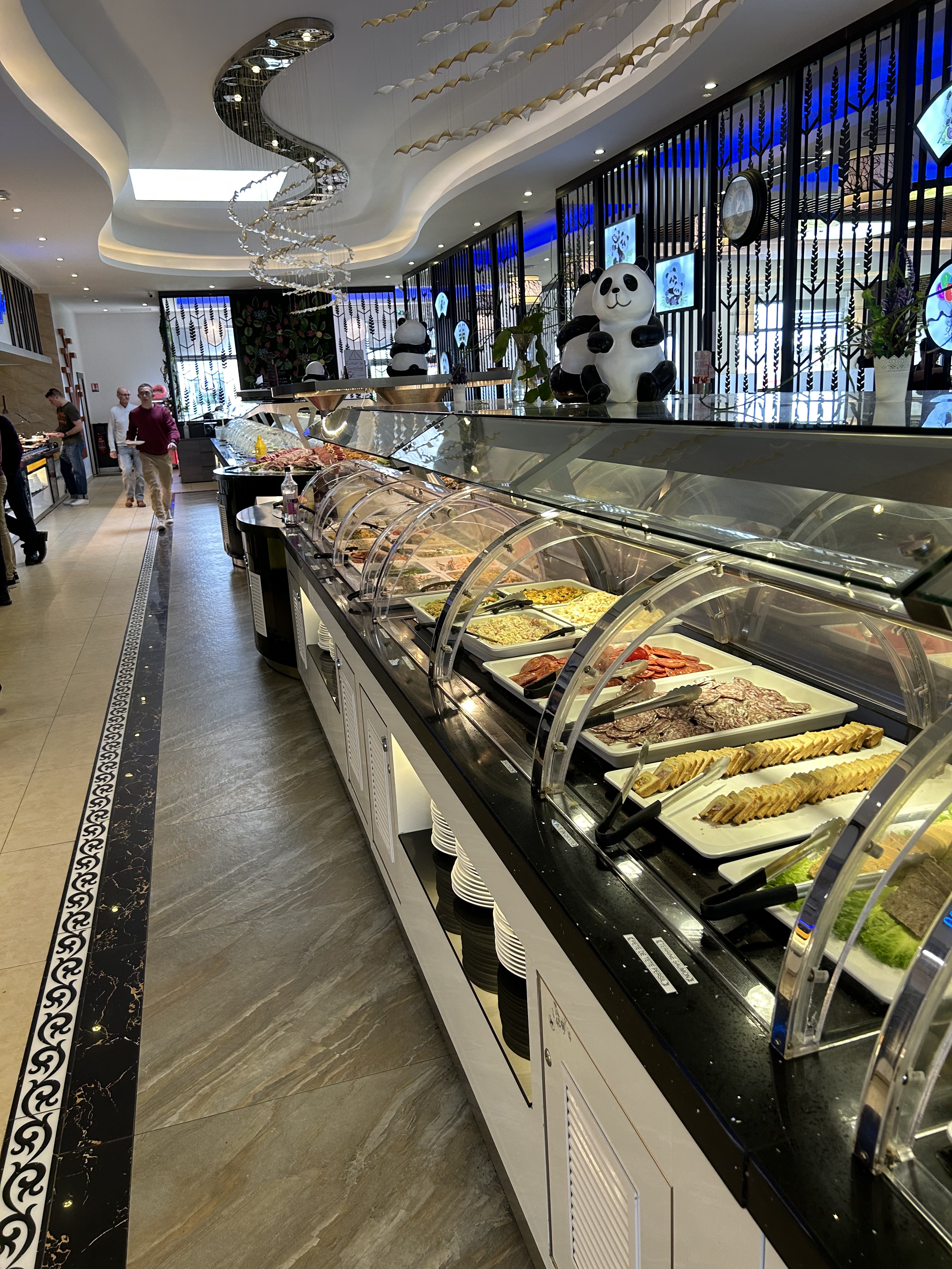 J'adore ce lieu pour sa beauté dans le monde des Panda 🐼 c'est un très grand restaurant donc forcément le weekend un peu bruyant mais la nourriture est vraiment exceptionnel pour un restaurant buffet il y a vraiment une très grande variété de choix que ce soit dans la viande ou poisson, fruits de mer etc... Un délice et le robot 🤖 qui vous apporte l'apéro c'est excellent 🐼