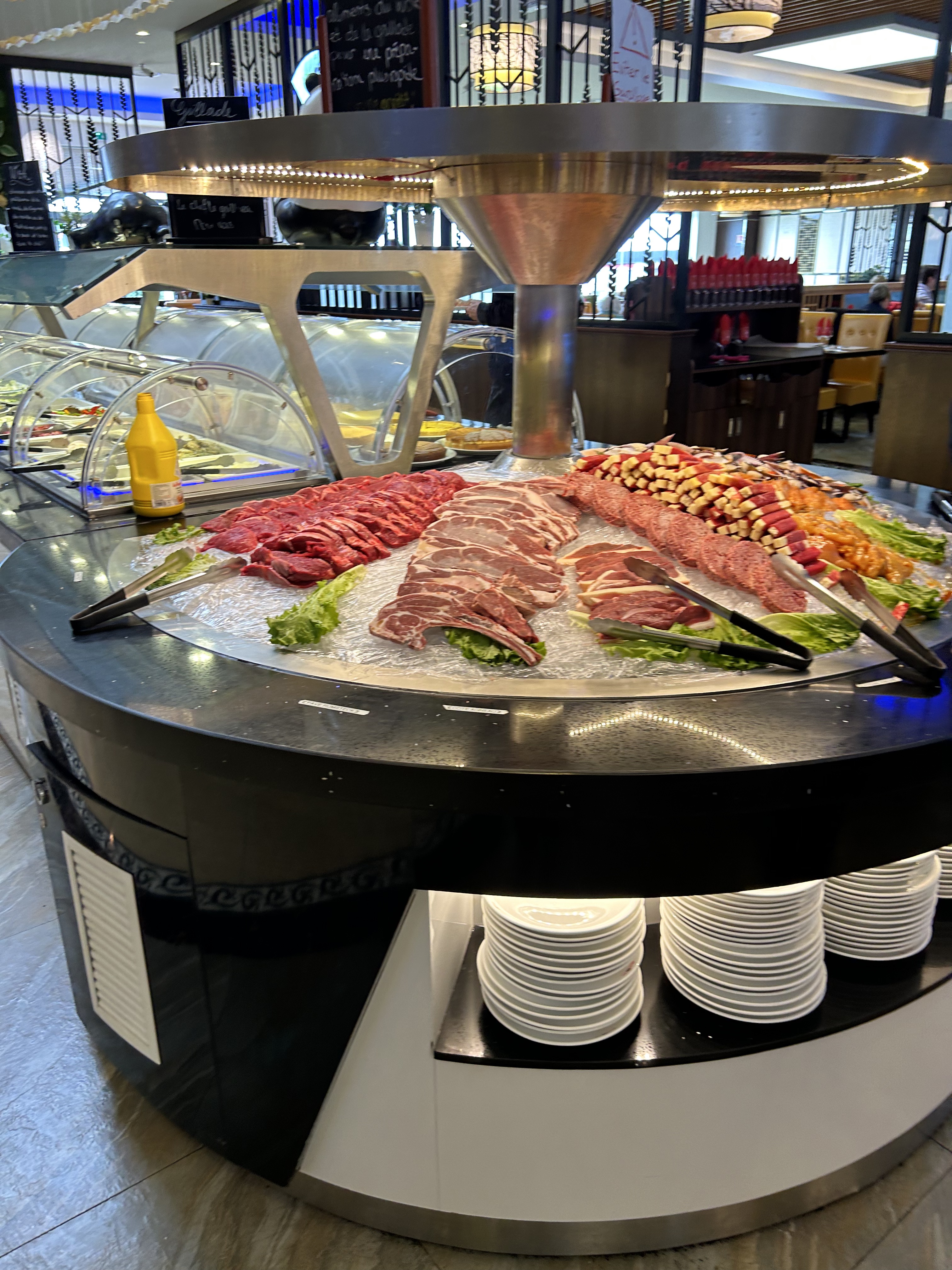 Grand buffet mais qui perd en qualité. La viande est parfois à peine mangeable. Le personnel n’est pas au top. Il y a beaucoup de choix mais la qualité n’est pas toujours au rendez-vous. C’était mieux au début mais cela se dégrade. Dommage car la salle est plutôt jolie et très vaste. C’est bruyant par contre. Je viens d’apprendre que des asticots se baladent dans les plats en cuisine. Et je retire une étoile car c’est pire que je ne le craignais.