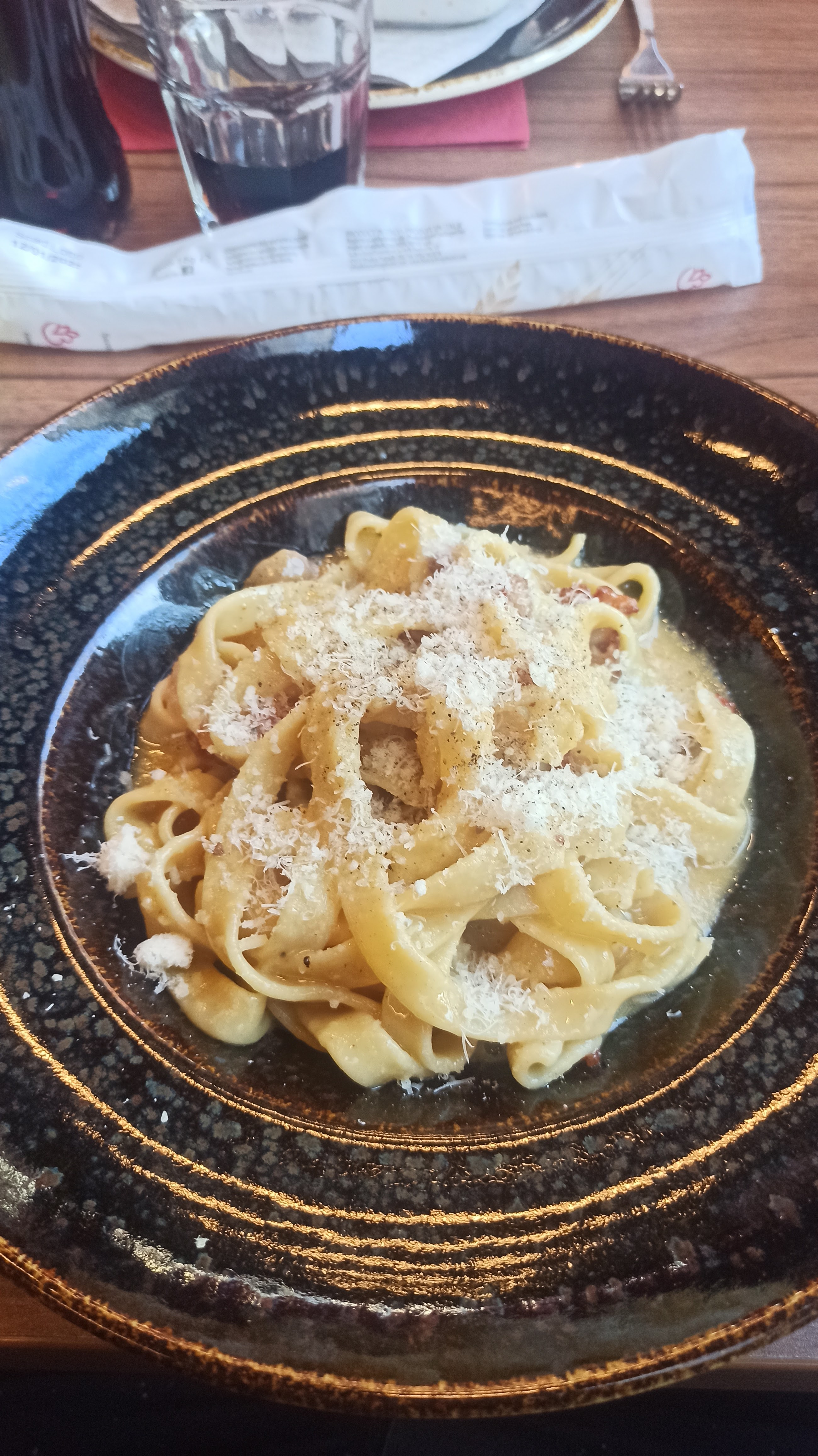 La cuisine n'est pas mauvaise mais la condescendance du serveur vis à vis de sa cuisine a été très désagréable. Les vraies carbo italienne n'avaient de vraies que le titre : oeuf trop cuit et avec le blanc (bouts d'omelette) et jambon à la place de la pancetta (occasionnel certes, mais sans intérêt).