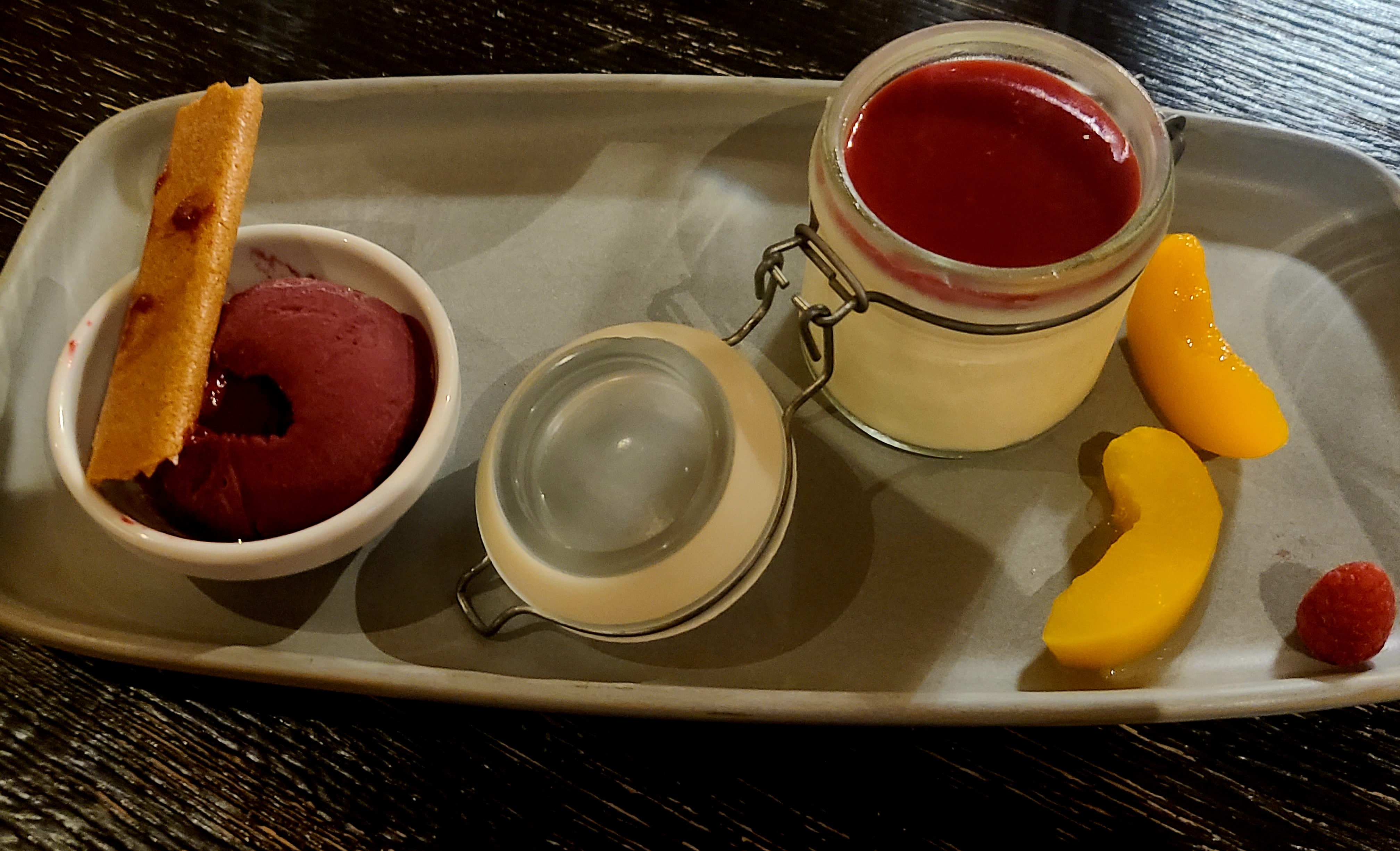 Le bar et ses coquilles Saint-Jacques étaient excellents. La panna cotta avait une super texture. On a très bien mangé !