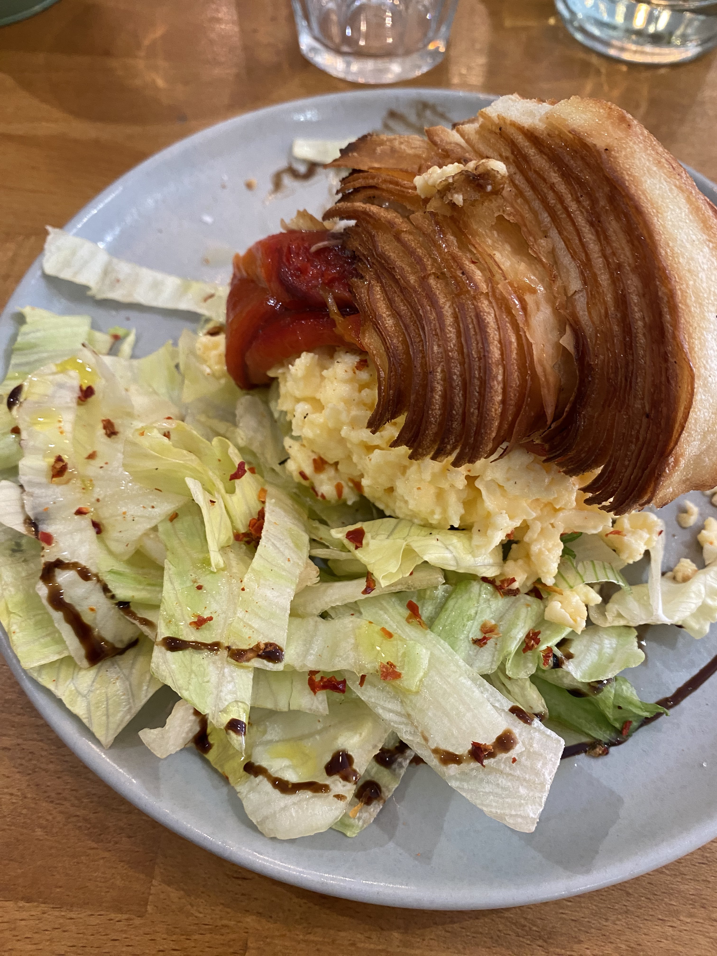 Les croissants les plus feuilletés de tout le pays. Vous pouvez dire qu’ils sont préparés avec soin, toutes les couches sont magnifiquement croustillantes. Visité tellement de fois au cours de mes 5 jours ici. Très bon café aussi !