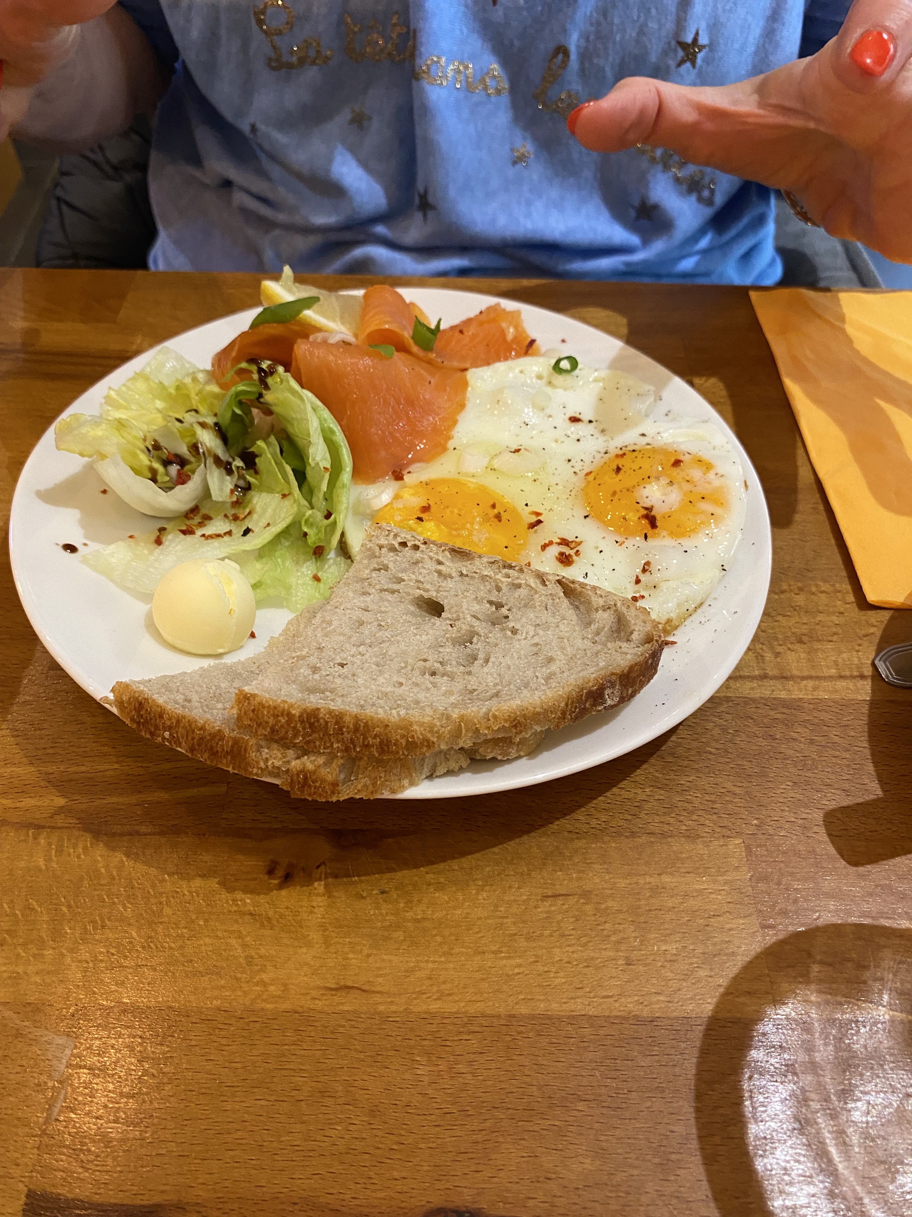 Très bons œufs et pancakes, bon café, lieu cosy et joliment décoré, mais service plus que moyen qui m’oblige à limiter le nombre d’étoiles… alors que nous étions avec un bébé (calme, heureusement), nos œufs n’ont été lancés que 45 minutes après notre arrivée… un oubli sans doute, on n’a pas trop su. En tout cas pas un seul mot pour s’excuser de l’oubli. Contraints de prendre un des plats à emporter à cause du retard, on nous l’apporte avec un « voila mais du coup il n’y a pas la boule de glace hein ». La cerise sur le gâteau c’est lorsqu’on nous demande en fin de service si tout s’est bien passé, que l’on répond (gentiment) « oui, mais on a un peu attendu quand même », et que la réponse est « ah bah oui il y avait du monde ». Non, il n’y avait pas de monde. Et toujours pas de « désolés ». La moindre des choses est de tenir compte de la gêne du client…