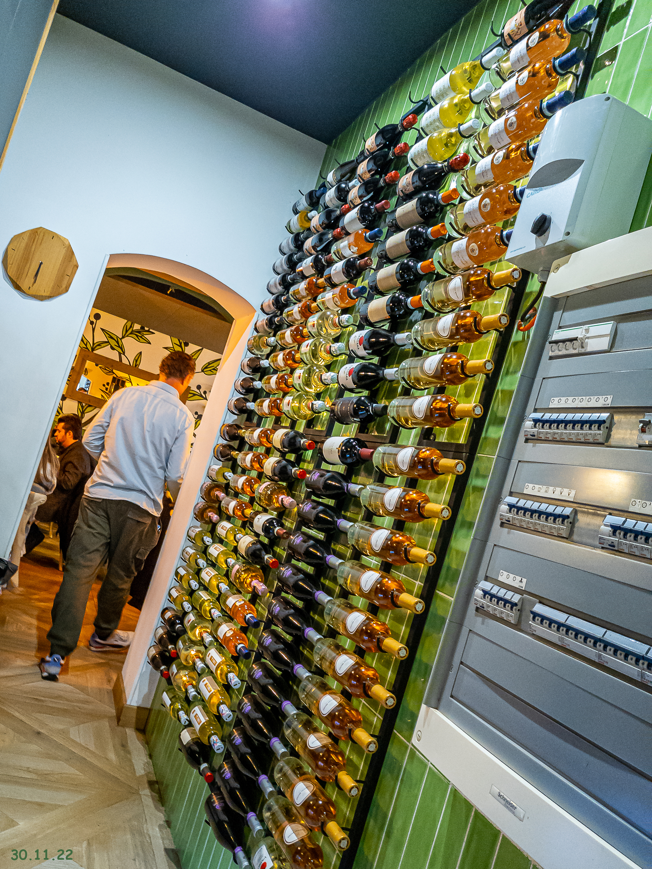 Un accueil souriant et chaleureux, un service impeccable et rapide. C'est donc un restaurant à recommander. Pour ma part, j'ai pris un menu du jour avec l'option pinza à la saucisse. La salle est bien installée et nous avons été en mesure de discuter entre collègues sans avoir besoin de parler fort. La cave à vin est très originale, voir la photo ci-dessous. Bref c'est du très bien.