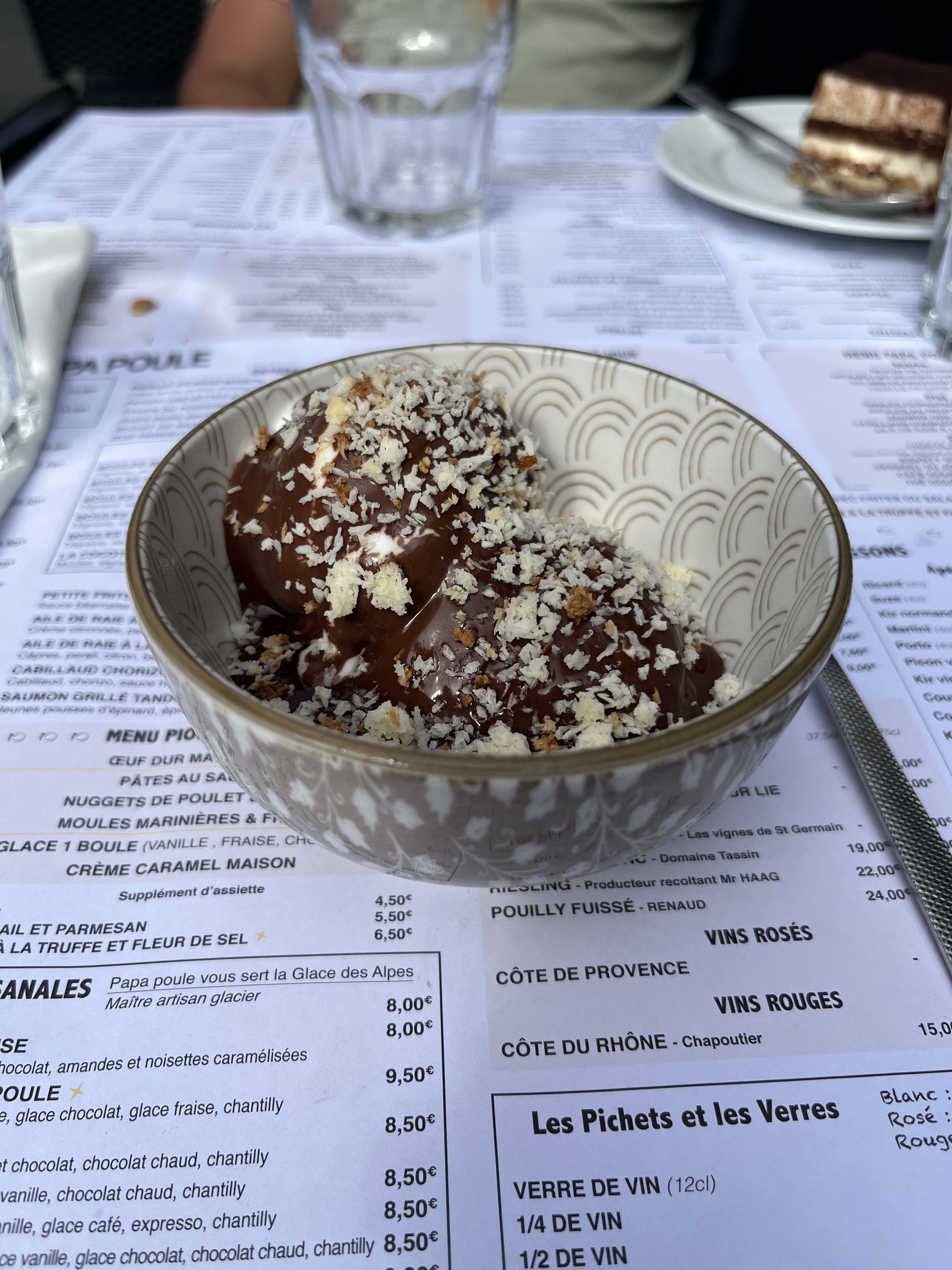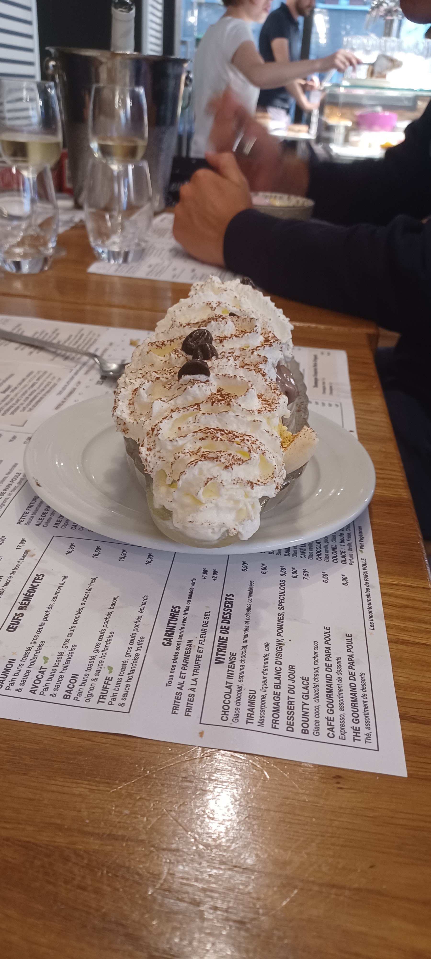 Dîner sympa. Cocotte papa poule : très bonne sauce. Le dessert pyjama papa poule très copieux. Notre serveur Kévin est de très bon conseil.