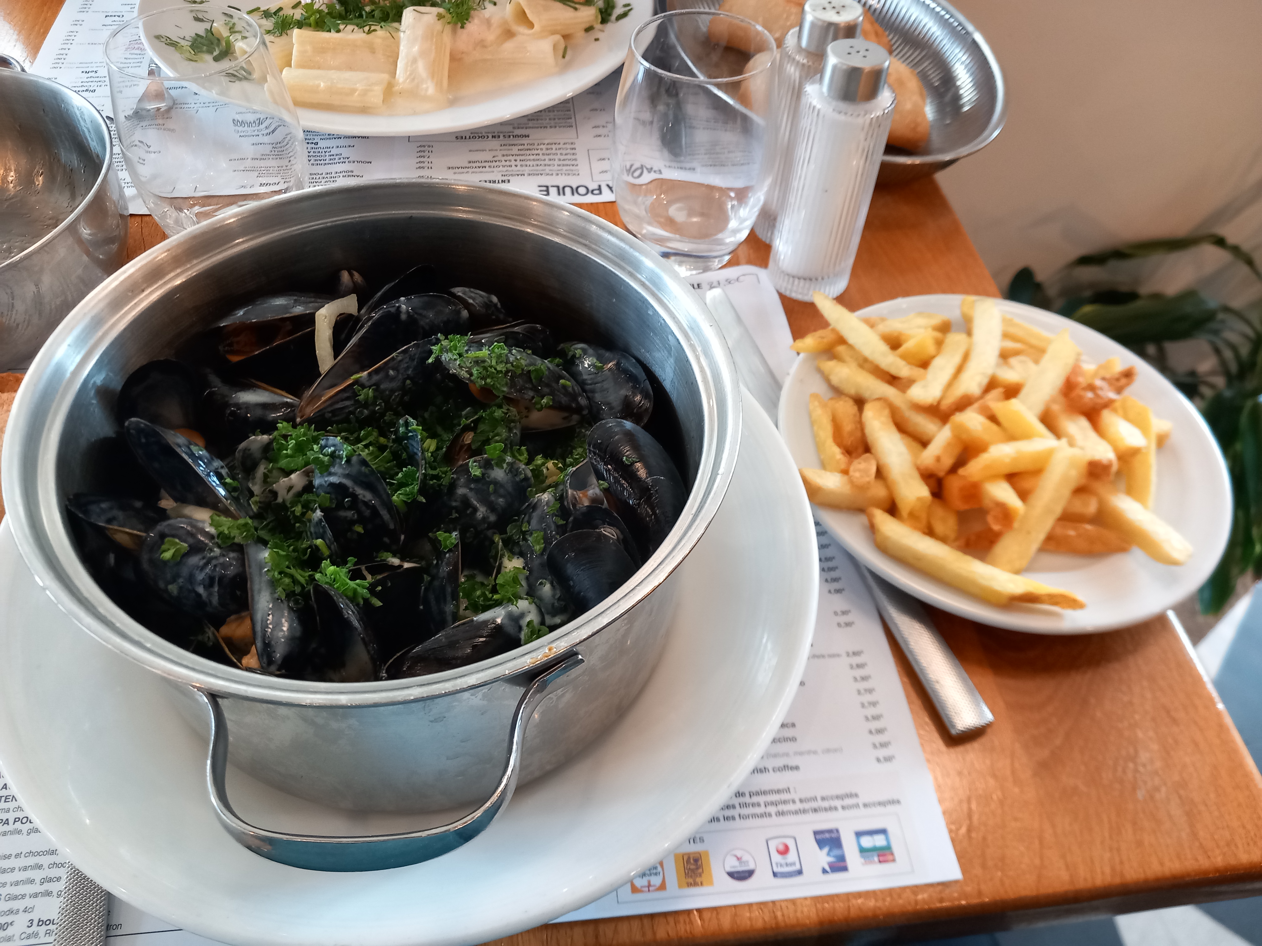 Personnels accueillants. Frites maison moules marinière OK. Par contre les pâtes aux saumon baigne dans la sauce pas de proposition de parmesan. Suggestion servir les pâtes dans une assiette creuse et chaude vous mettrez moins de sauce et les pâtes resterons chaude. A part sa le reste était parfait