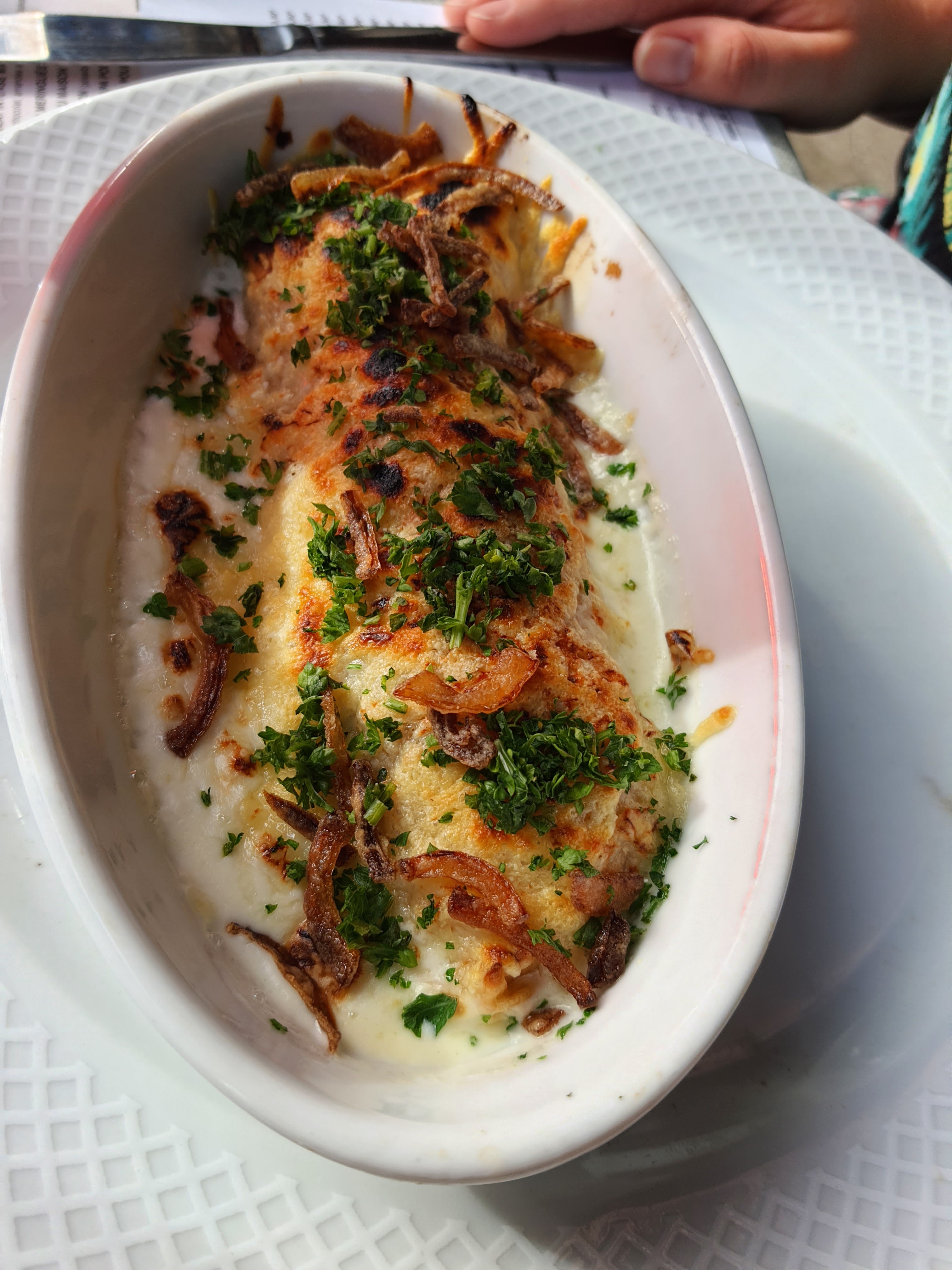On mange correctement avec un peu trop d’aneth à mon goût. Entre les plats c’est beaucoup trop long. Le personnel prend les commandes c’est déjà pas mal