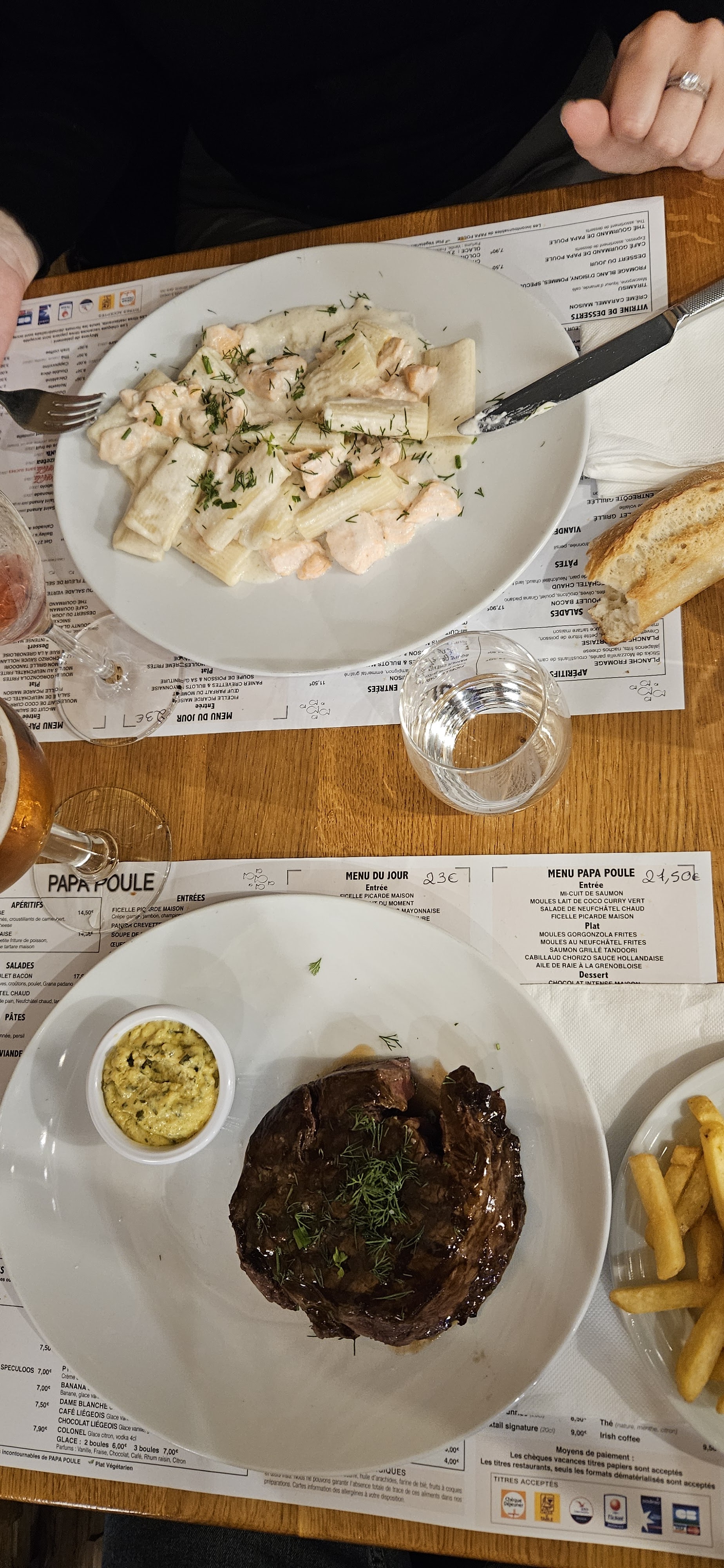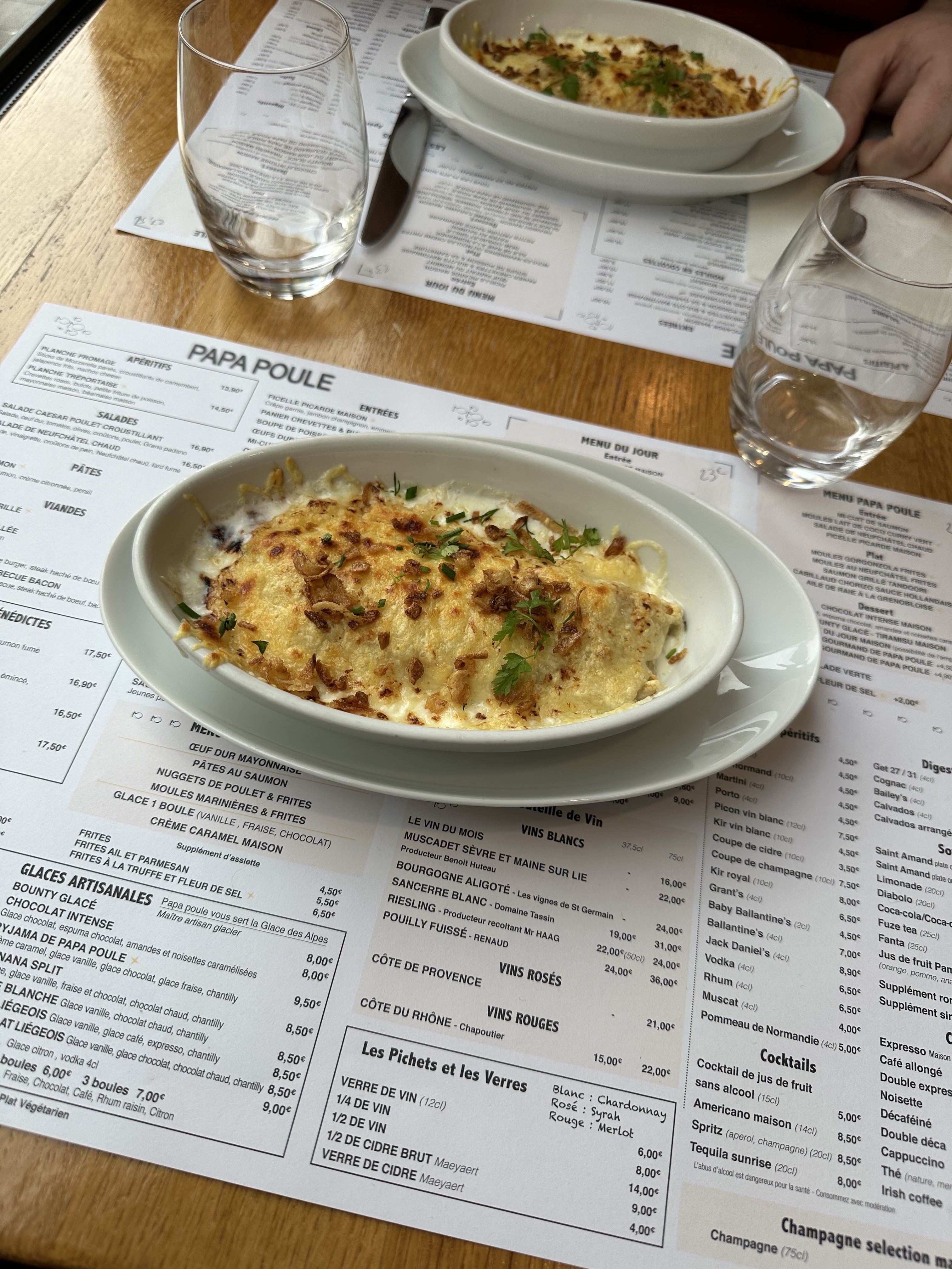 Nous sommes aller manger au restaurant papa poule un soir de semaine, il n’y avait pas trop d’attente entre les plats ce qui est plutôt agréable. Le personnels est très sympa et attentionné dommage que nous n’avons pas eu le même serveur tout au long de la soirée. Nous avons pris un menu à 23€ L’entrée était très bonne ! Et surtout des produits frais. Les moules étaient bonnes mais trop de vin blanc à mon goût et pas d’oignons (avis personnel). Dommage que le tiramisu « maison » n’est pas maison. Je recommande !