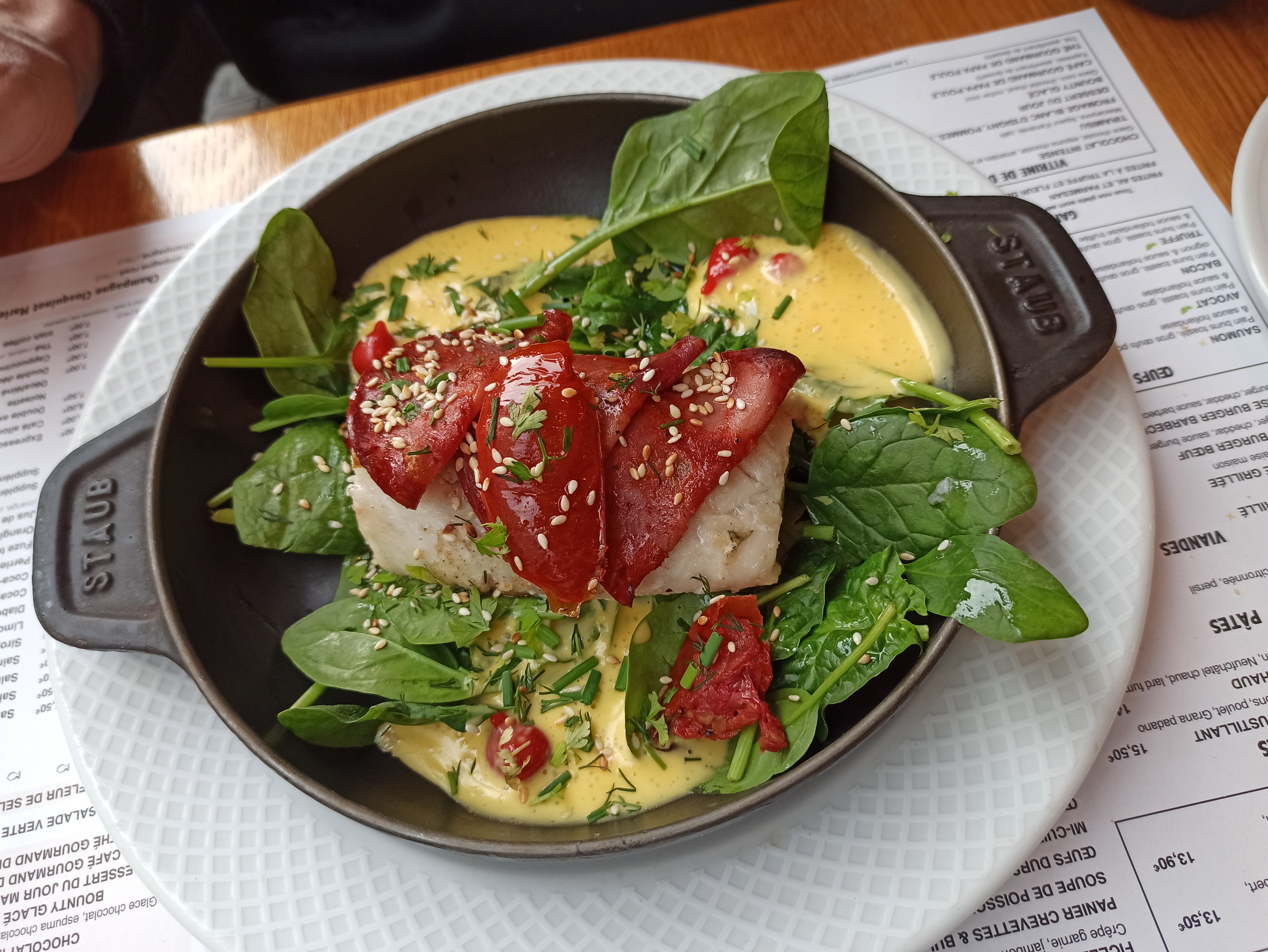 Le serveur au top..agréable..très bon conseillé +++. Cadre agréable..repas excellent. Je recommande. Repas à 27€50 Mi cuit de saumon Dos de cabillaud chorizo sauce hollandaise Fort tout chocolat avec noisettes et amandes torréfiées 😋😋