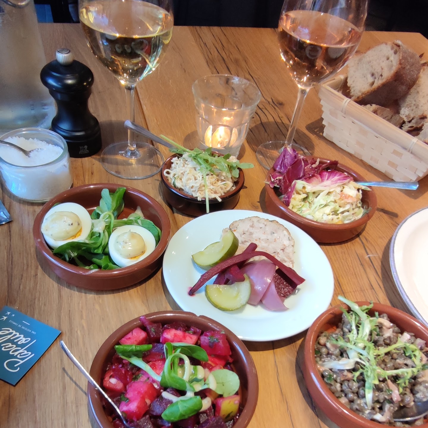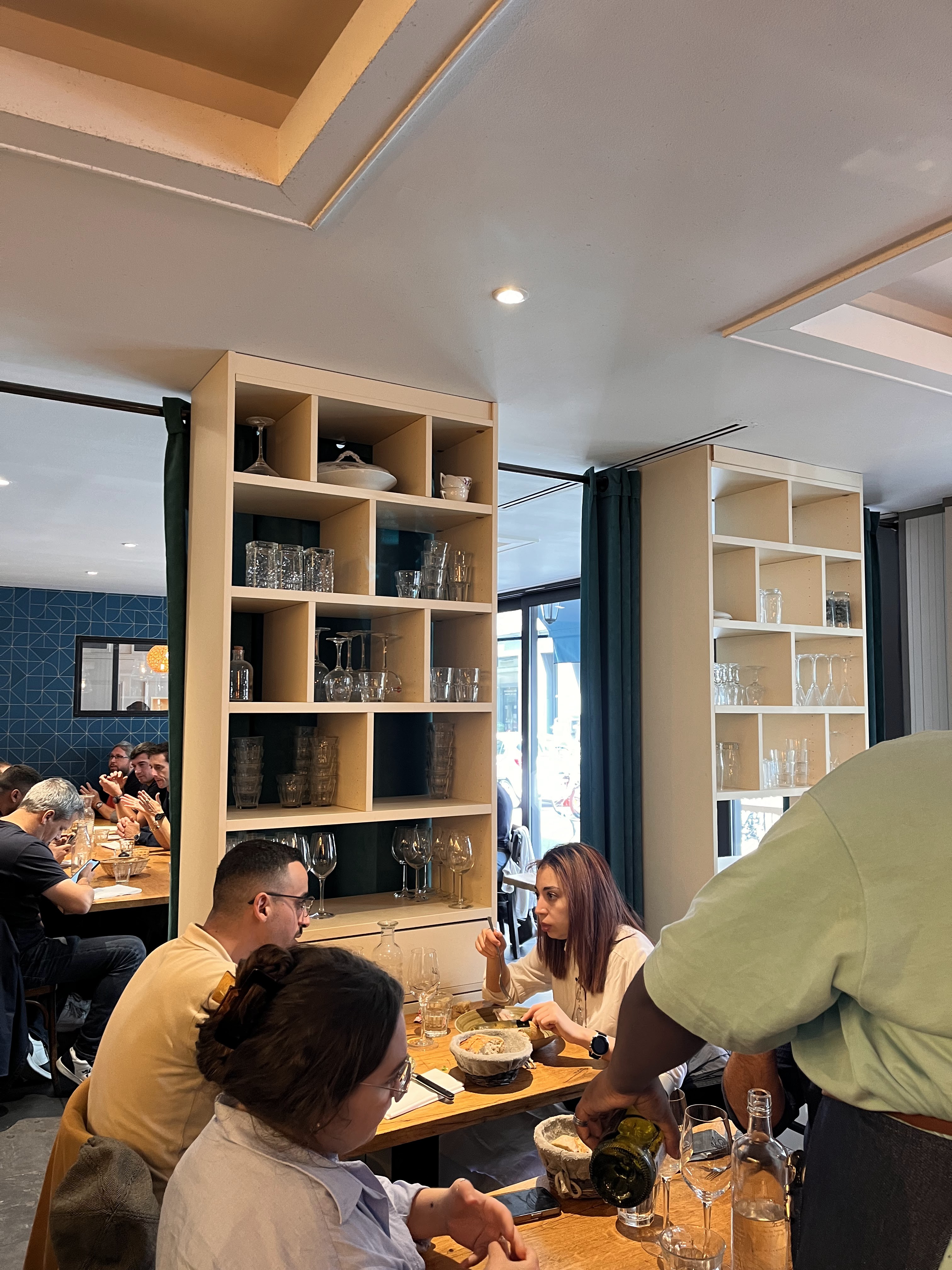 Une super adresse de quartier & parfaite pour y dîner avec un groupe d’amis. Nous avions la grande table dressée au fond de la salle. Au dîner : Entrée / Plat / Dessert pour 35€. En entrée, c’est un assortiment avec des produits frais : crevettes, bulots, salade de topinambours, betteraves, os à moelle. C’est en quantité et c’est quali ! Un vrai moment de partage. Choix entre des plats qui ont tous l’air excellents. Mention spéciale pour le bun feuilleté avec cailles. Original & en meme temps super régressif. Et en dessert, plus classique, un peu plus en dessous mais généreux ! On ne vous force pas à la consommation, le service est plus que souriant, génial… si rare à Paris, et d’autant plus pour des grandes tablées ! Choix de vins très accessibles.