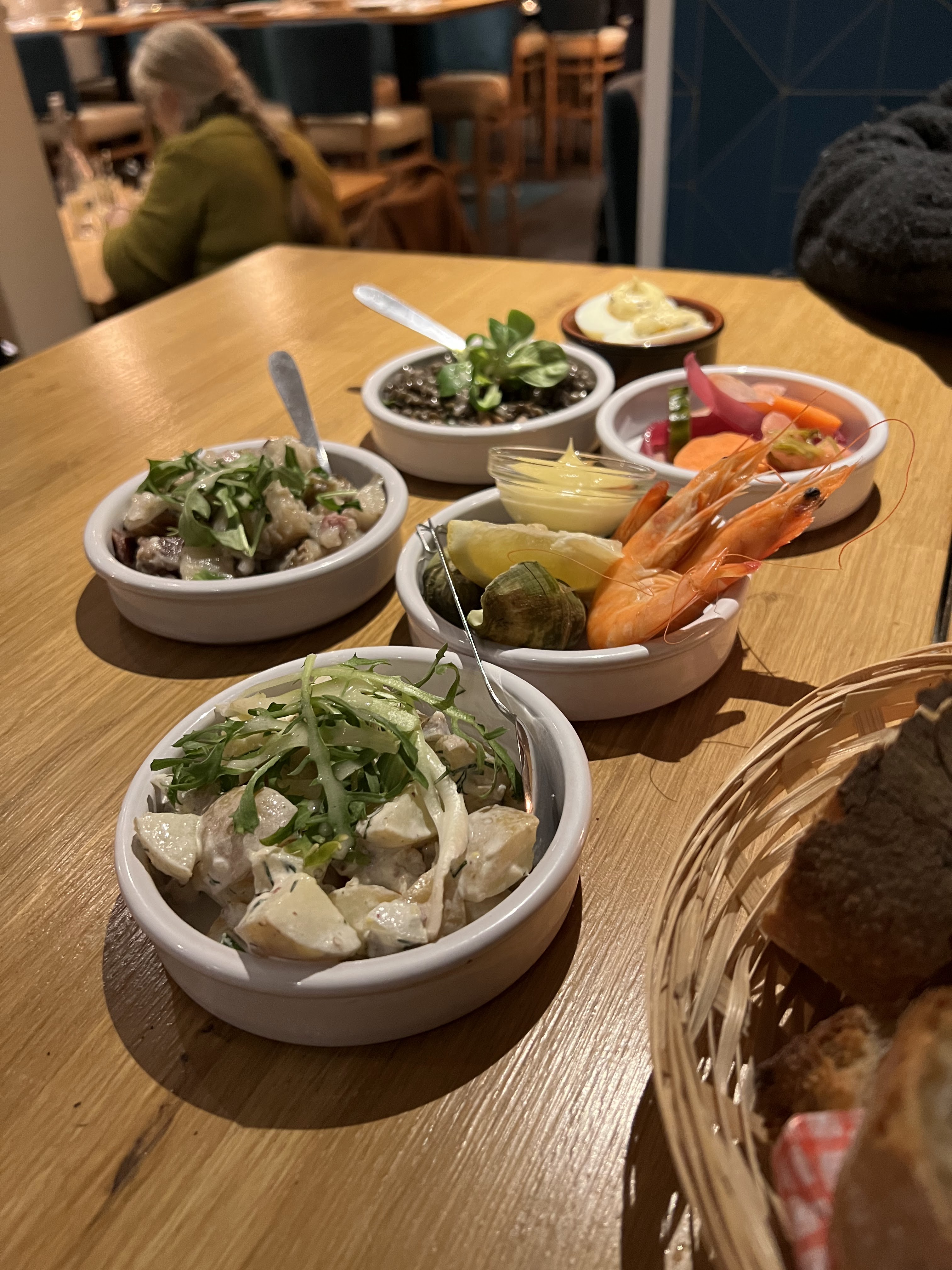 Un restaurant avec un concept sympa. Service rapide et serveuse agréable et souriante, cependant le tartare de saumon m’a déçu : trop d aneth à mon goût qui gâche le goût du saumon. Un accompagnement “léger” : artichaut ou pomme de terre grenaille , une quantité trop peu suffisante dans l’assiette. Pour le dessert, le clafoutis au figues: présenté assez originalement mais un dessert trop cuit, on ne sentait pas le goût du fruit c’est dommage!