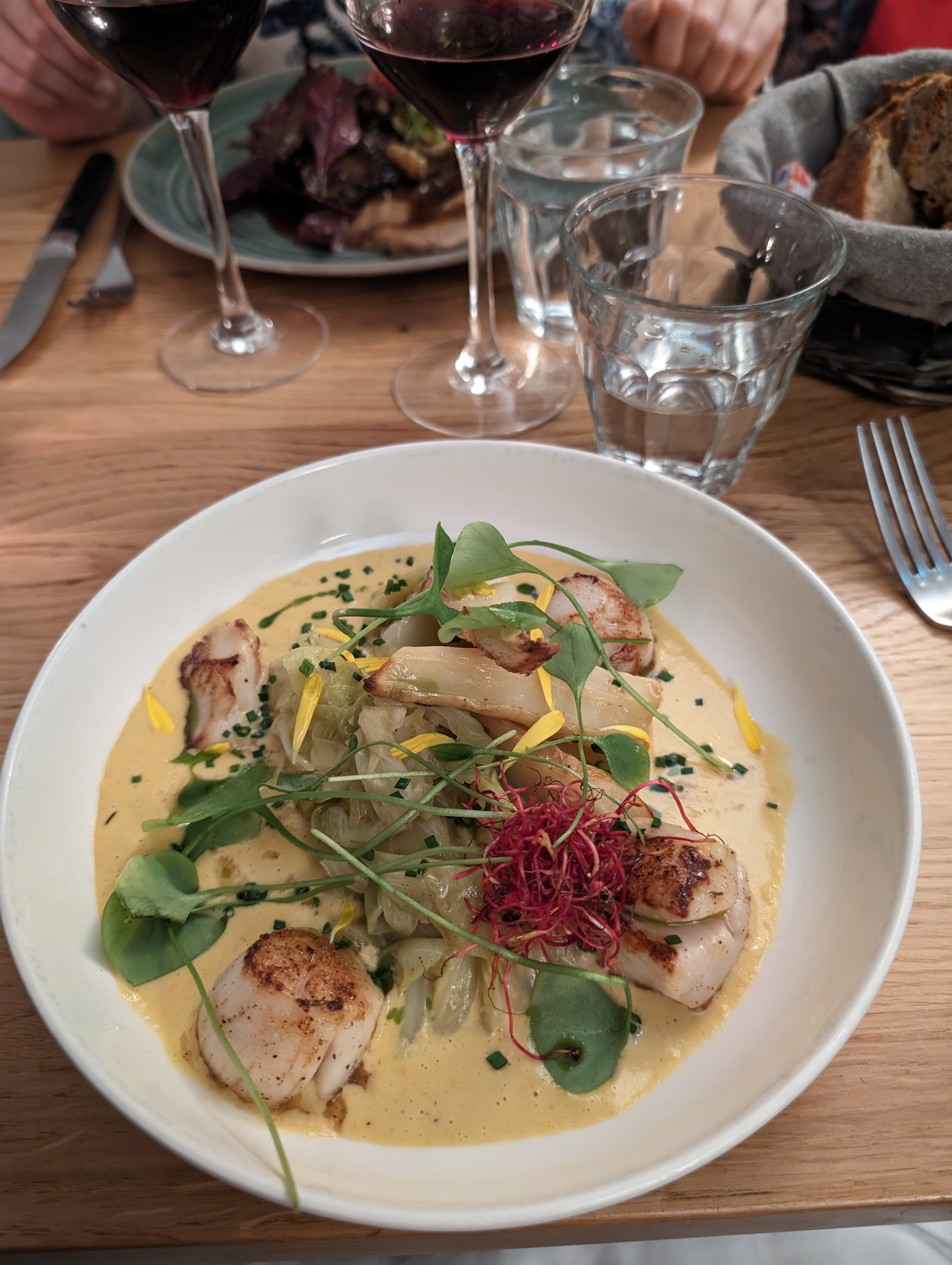 Plat excellent (Saint Jacques), et les multiples entrées et desserts à partager (y compris quand on est que 2 convives) sont à la fois gustativement très satisfaisantes et font du repas un moment d'autant plus convivial. Ajoutez à ça un service présent sans en faire trop, et c'est un 10/10 bien mérité.