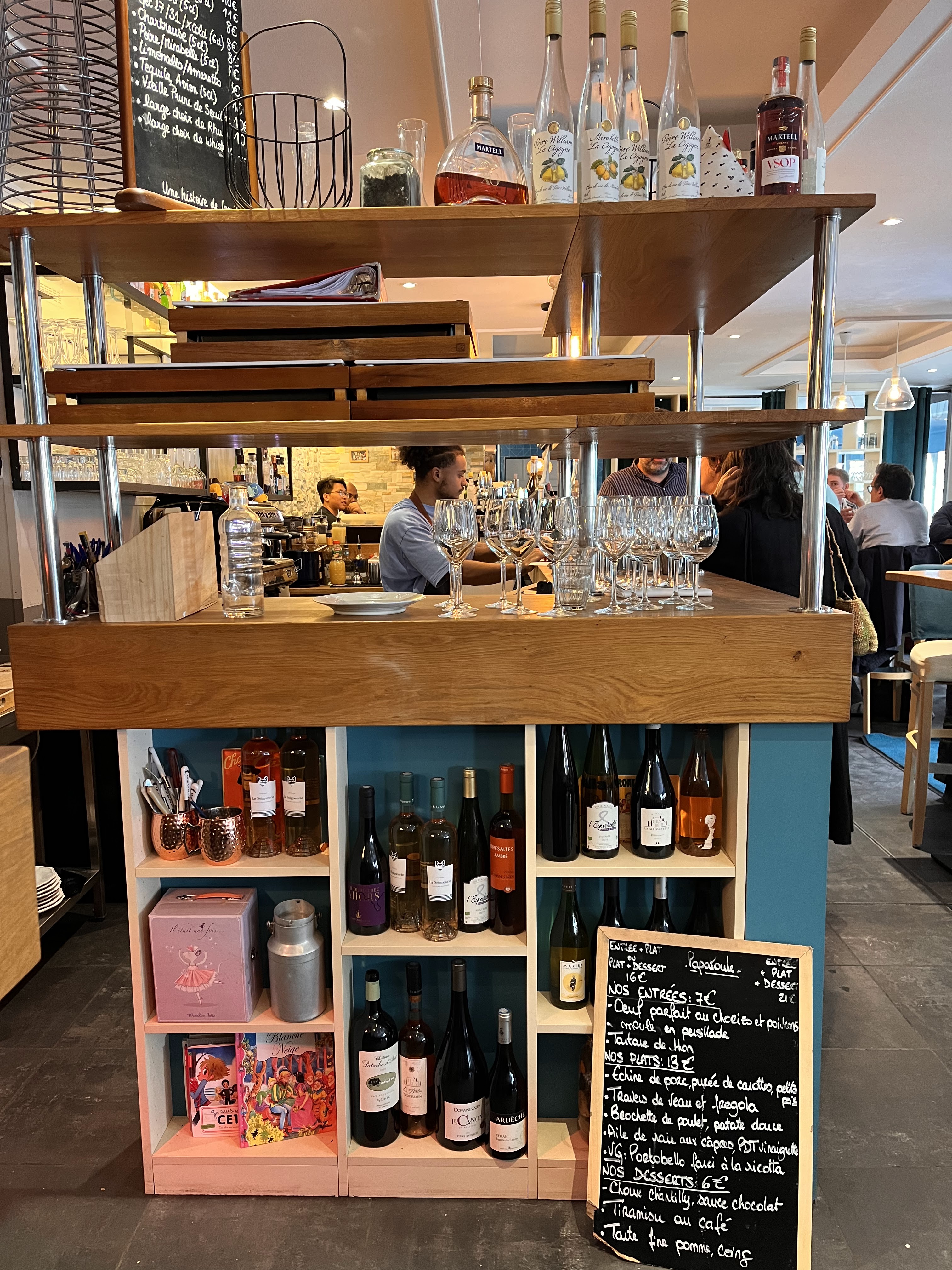 Très bon moment passé entre amis. Nous étions 6 et avons été installés dans la petite salle du fond, une sensation de comme à la maison très agréable. Un grand merci à Cédric, qui malgré le rythme soutenu du second service, a été extra, très sympathique, de bons conseils, un acteur de cet excellent moment partagé ensemble. Côté nourriture, le concept d'entrées et desserts à partager est très convivial, d'autant que les mets sont savoureux et de qualité. La cuisine est inventive et les produits frais. Pour parachever ce très bon tableau, les vins affichent des prix plus que correct pour un restaurant parisien. A visiter de toute urgence !!!!