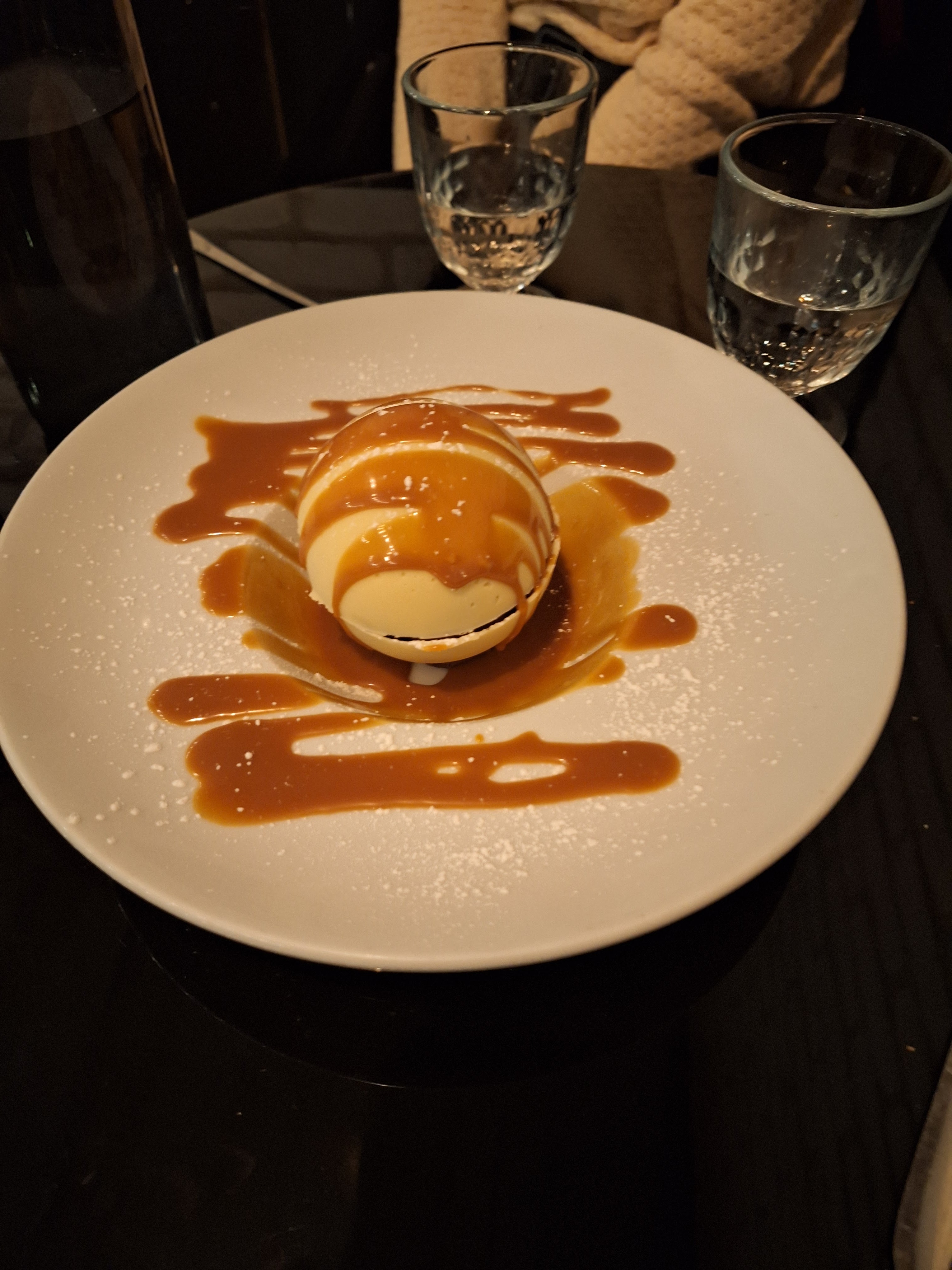 Très sympa service parfait, les plats sont excellents ainsi que les desserts en particulier la mousse au chocolat dans sa sphère au chocolat blanc et son caramel maison