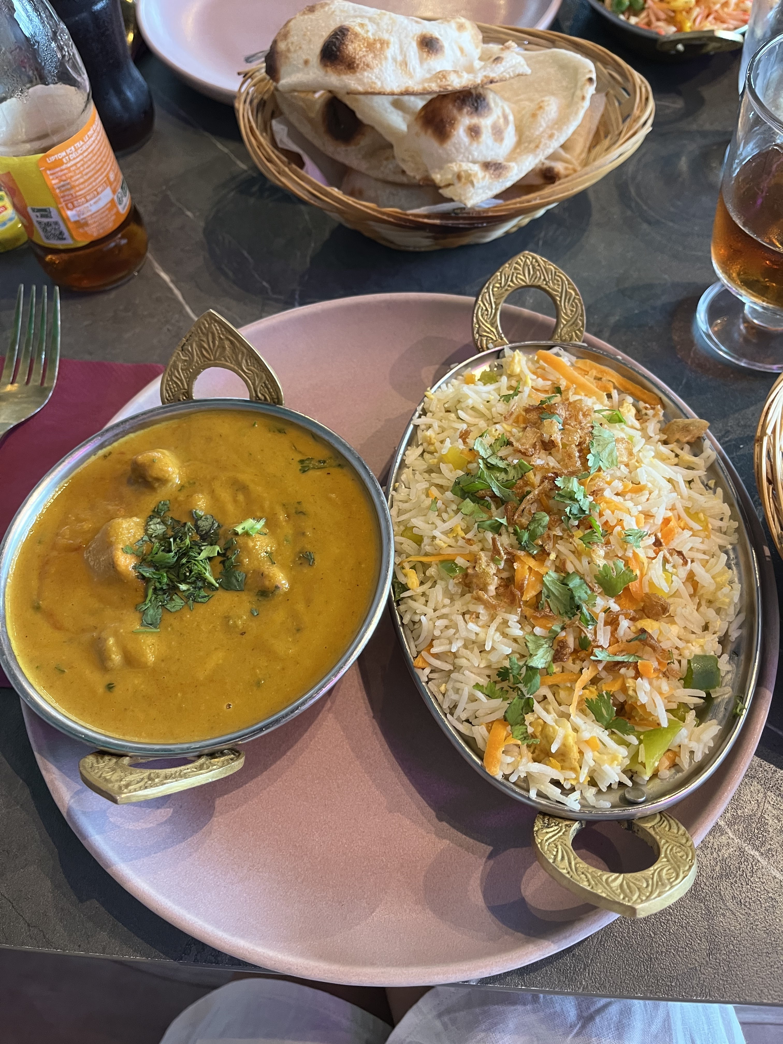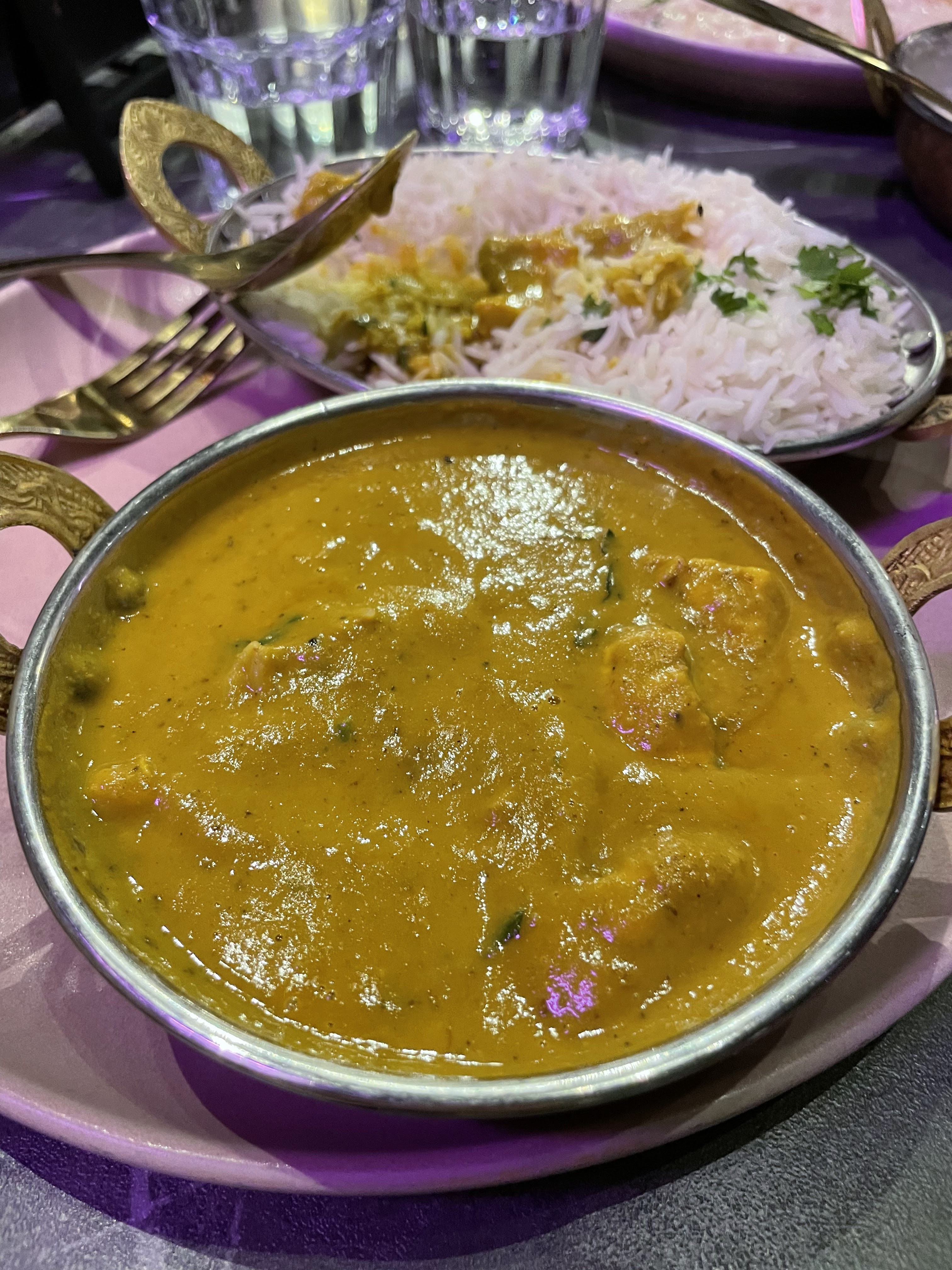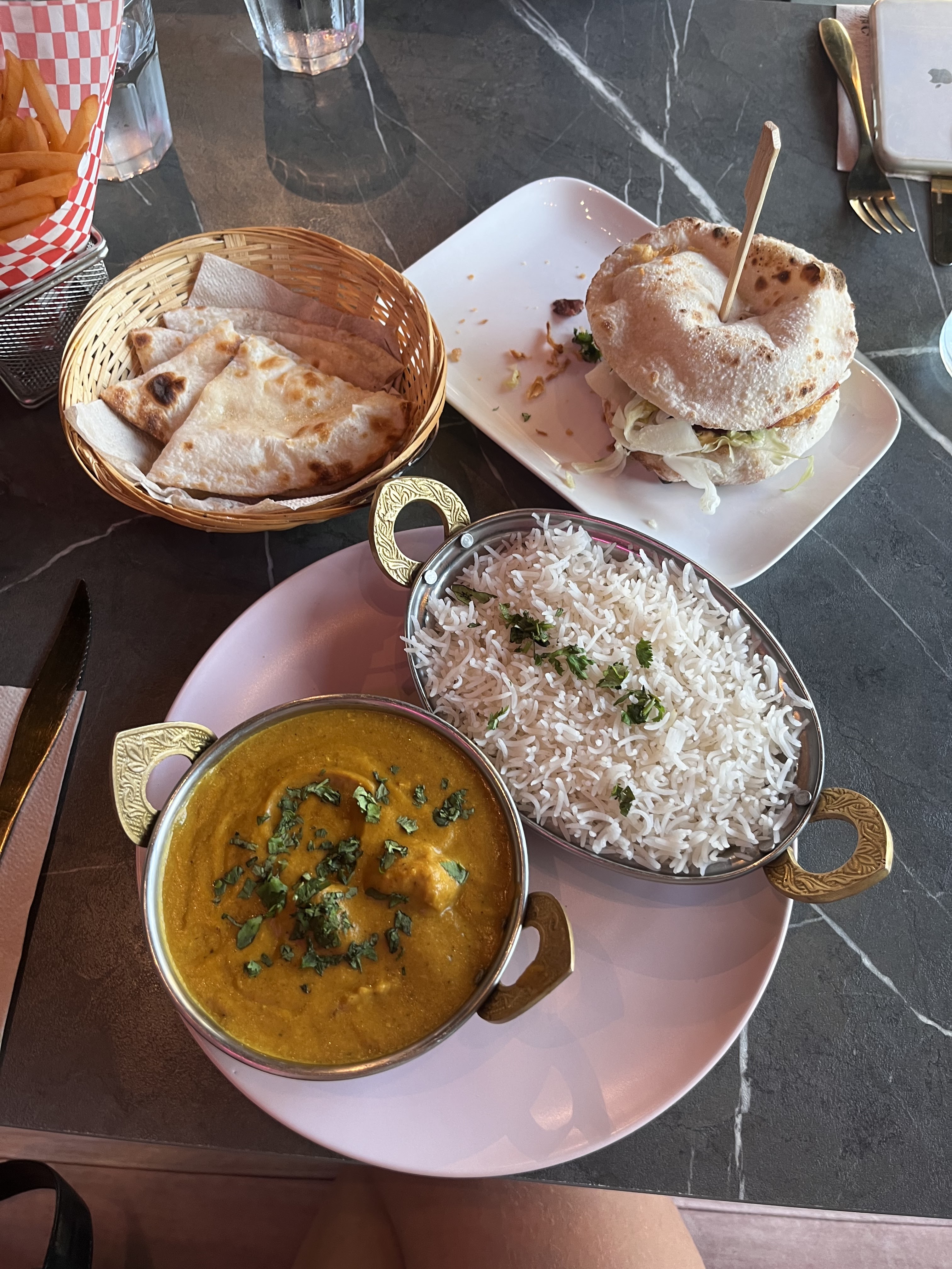 Bonne adresse ! J'ai pris un butter chicken + du riz basmati avec un naan au fromage, le naan aurait pu avoir plus de fromage comparé à d'autres restaurants indiens que j'ai pu tester, mais cela reste correct. La sauce du butter chicken était bonne