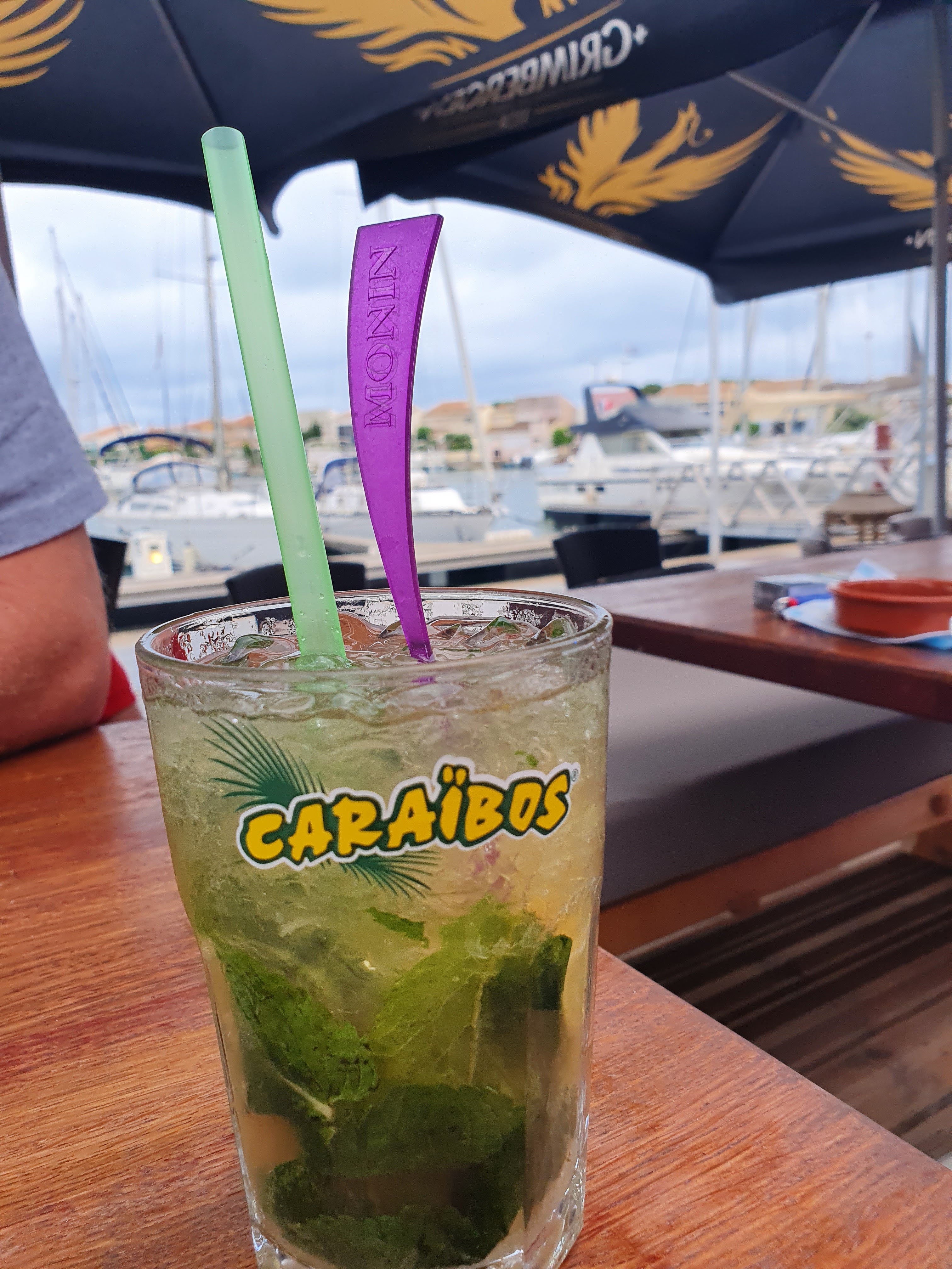 Bien installé dans les coussins face au port, j'ai pu redécouvrir un bounty sous forme de cocktail, absolument délicieux ! 🍹🧉🥰