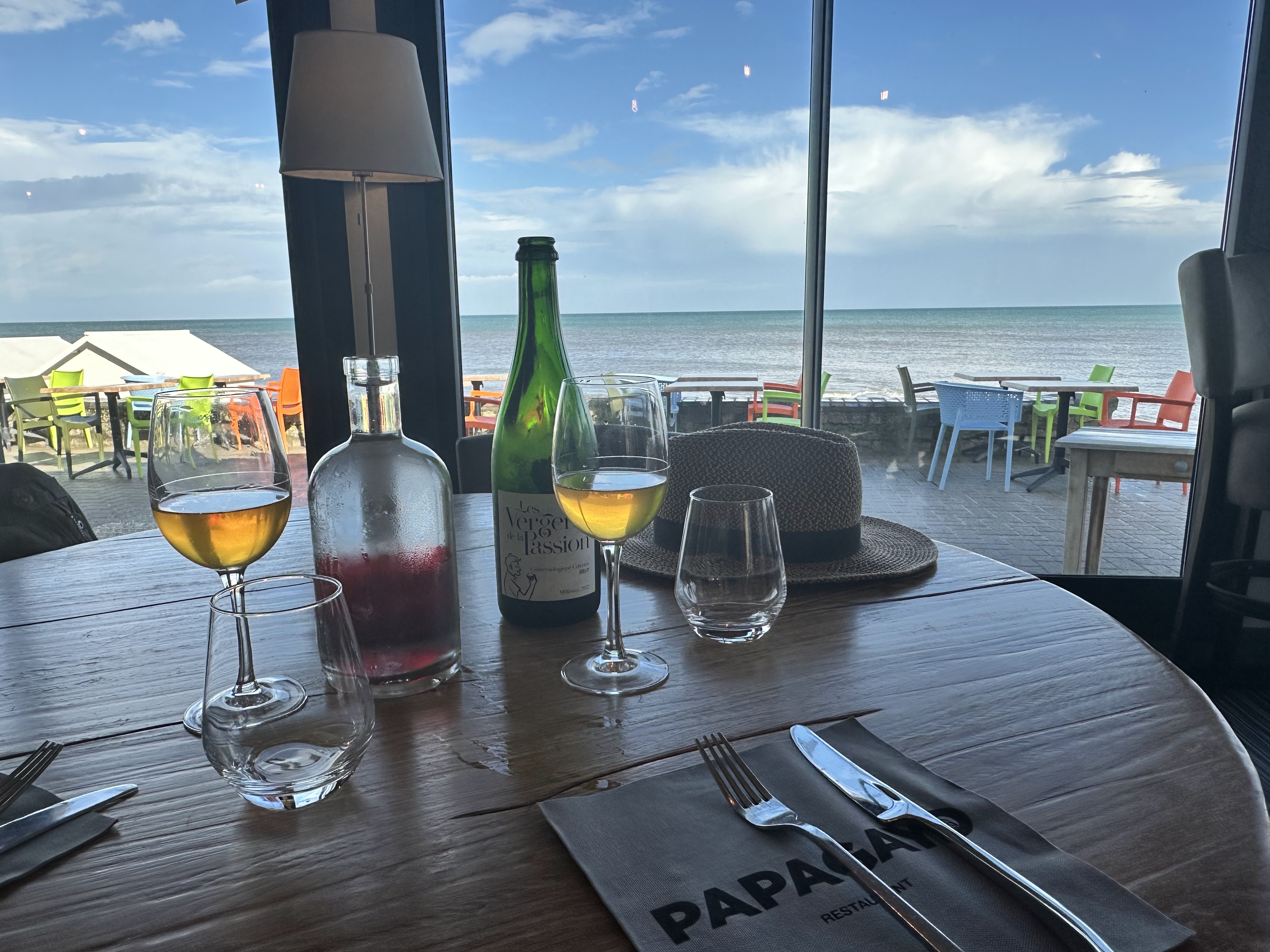 Cadre chic et cosy avec vue directe sur la mer. Le problème concerne la qualité de certains plats proposés qui ne sont pas à la hauteur des prix. Par exemple: les pâtes aux gambas façon thaï se sont avérées fades et sur-cuites, bien que les 5 gambas elles-même étaient délicieuses, je n'ai pas pu manger les pâtes et le serveur ne s'en est pas ému pour autant. Les moules frites goûtées dans les assiettes de mes filles étaient plutôt bonnes cependant, ainsi que les fruits de mer et les desserts. Nous reviendrons, en étant plus vigilants sur les mets commandés.