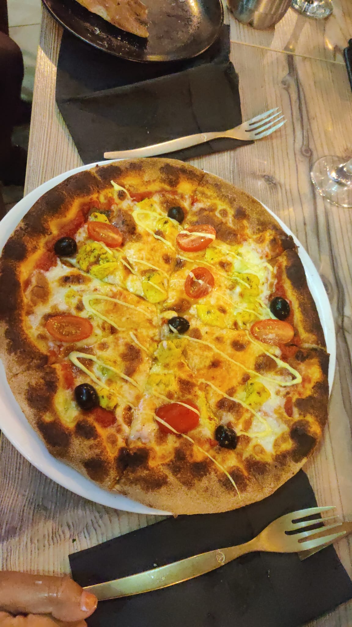 Que du positif :-) Un accueil chaleureux, un service impeccable, des pizzas bien garnies et des desserts généreux.. (la viande est halal) En plus de ça, il n'y avait pas grand monde, c'était calme et très agréable. Nous reviendrons avec plaisir!