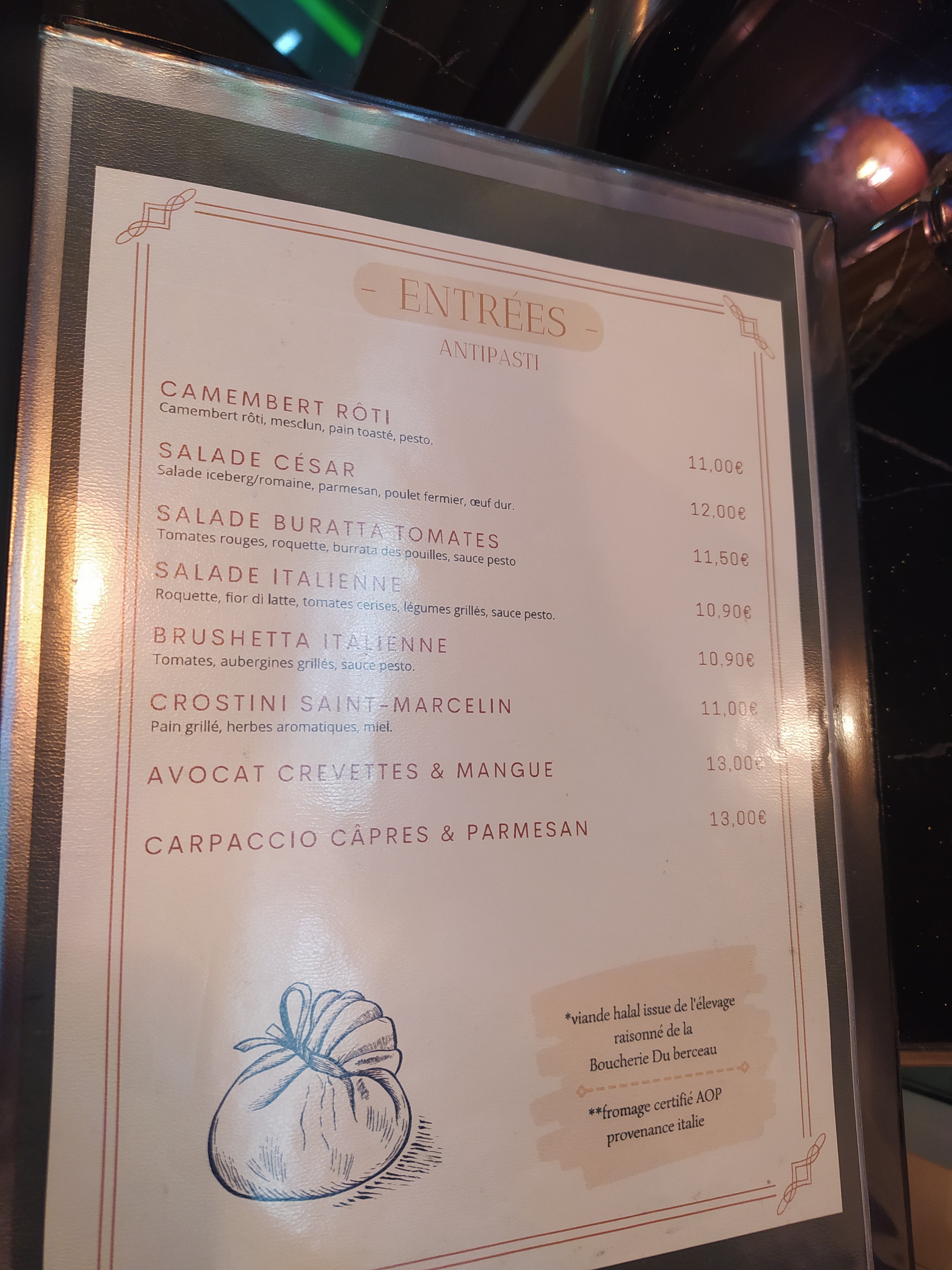 Cadre sympa, quartier calme, viande halal. J'ai apprecié ce moment dans ce restaurant très sympa 👏👍 ! Le serveur est tres acceuillant et sympathique. Le camembert rôti en entree est super bon pour les amateurs de fromage, et la portion est suffisante on ne risque pas d'etre écœuré. La calzone est pas mal mais légèrement costaud haha pour les petits estomacs on risque pas d'atteindre l'étape du dessert. Pour finir, le tiramisu est tres basique, j'ai apprécié mais sans plus... Je recommande 😌