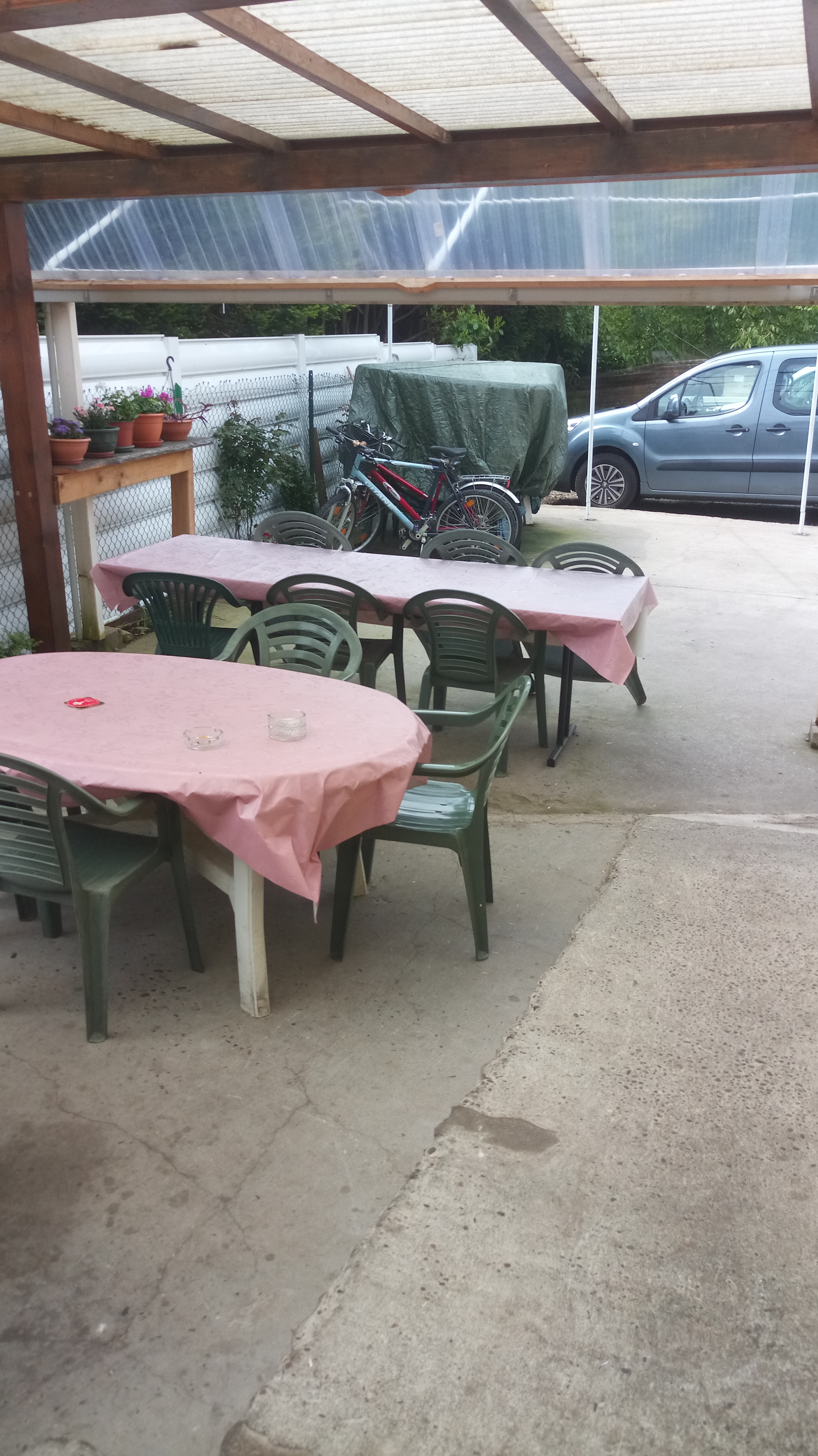 Mauvais accueil par la patronne car nous sommes arrives avec ma chienne d'assistance handi chiens,déjà qu'il n'y a pas d'abord bien nivelé, est dur avec un petit fauteuil de ville.C'est sa fille qui a fait comprendre que pour ma chienne pour handicapé ou aveugle, c'était la loi. Le repas, c'est une pizza surgelée où elle ajoute quelques condiments,légumes, charcuterie, et elle appelle cela une pizza maison !!!! Déçus tous les deux mon époux et moi, après avoir fait plus de 500km!!!!
