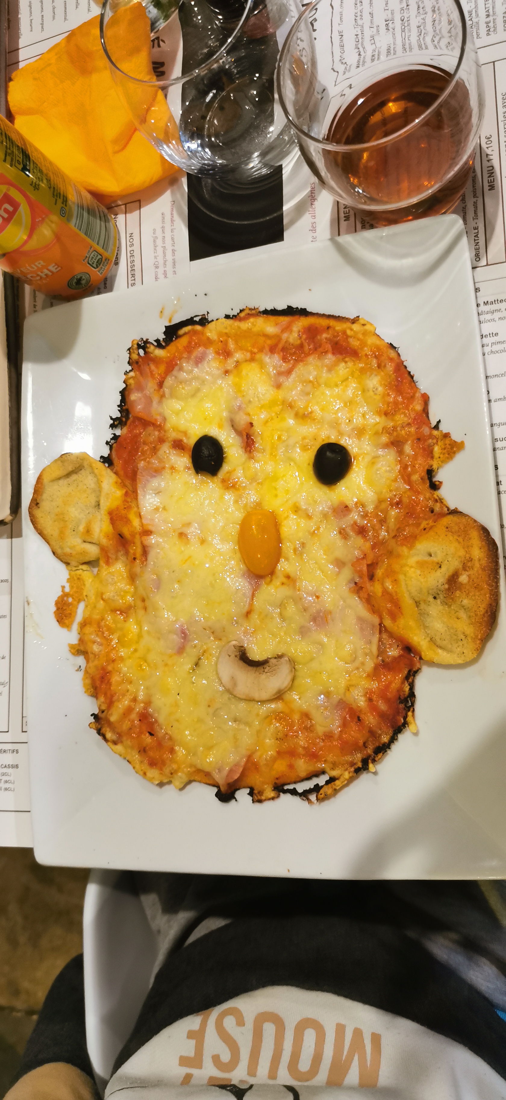 J'ai aimé le concept, de très bon plats sont servis avec une salade d'accueil même si vous commandez une pizza 😊 😋 Petit clin d'œil à la pizza tête de singe pour les enfants sympa 😉