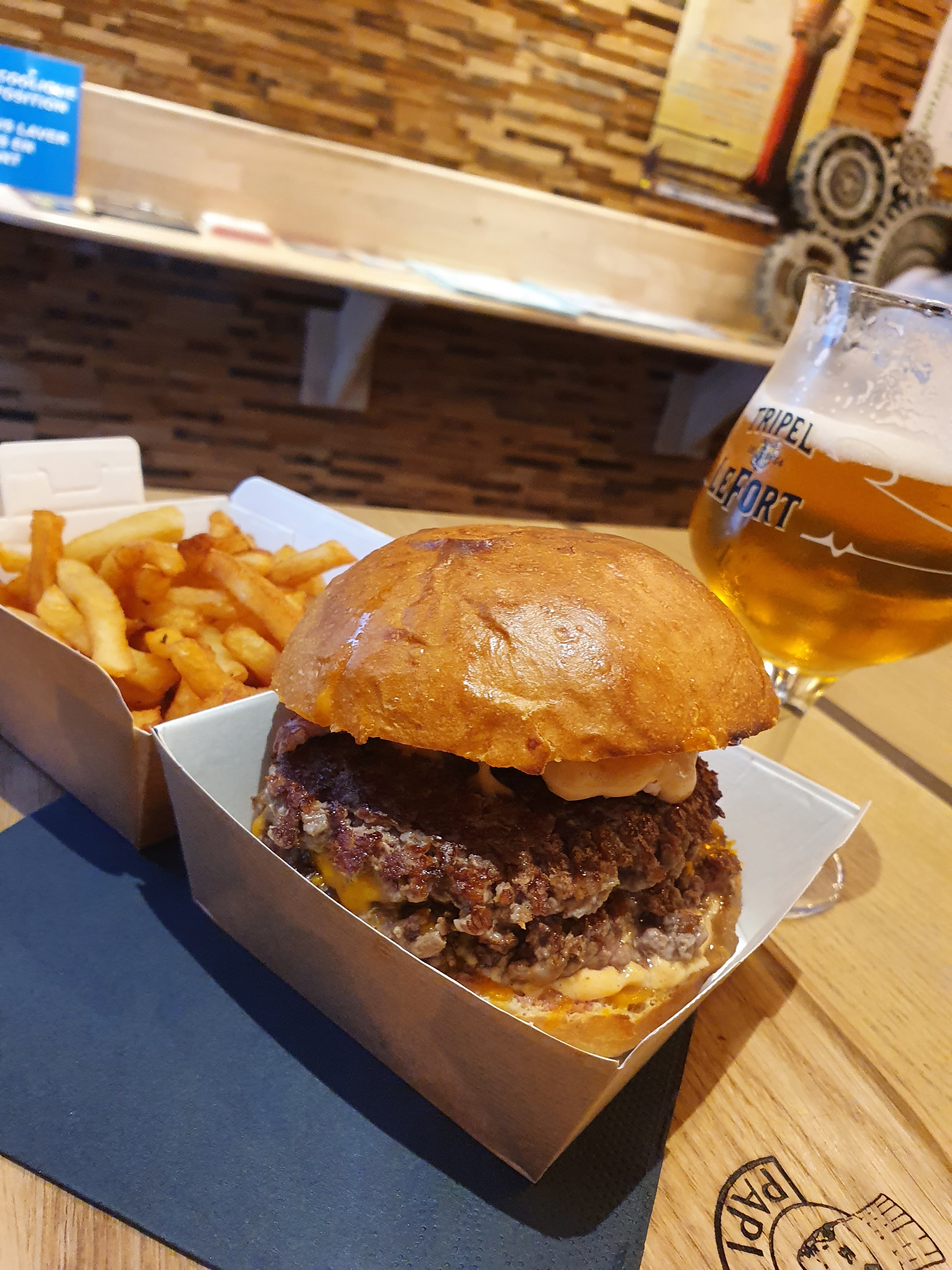 Voici un lieu qui ne paye pas de mine, on s'y assoit sans chichi, et on déguste un burger (tous plus alléchants les uns que les autres) fait maison, généreux, goûteux, délicieux avec des frites et une super sauce. Bien sûr nous avons pris une bière Maes pour accompagner le tout. Un régal, sans oublier l'ambiance : de la bonne musique et un service très sympa. Attention mieux vaut réserver pour éviter une déconvenue.