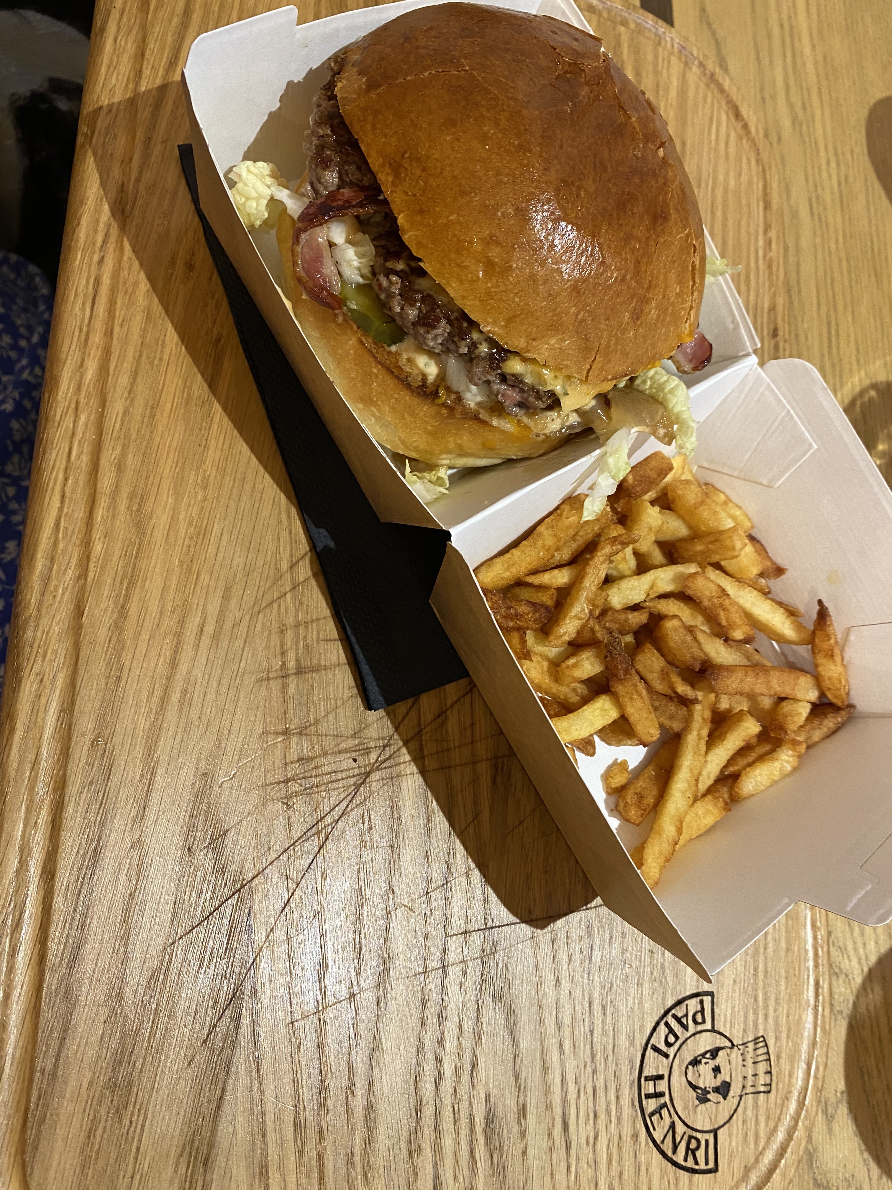 Très bon burger, un accueil au top. Les frites sont excellente. Vous n'aurez pas faim en sortant de chez Papi Henri