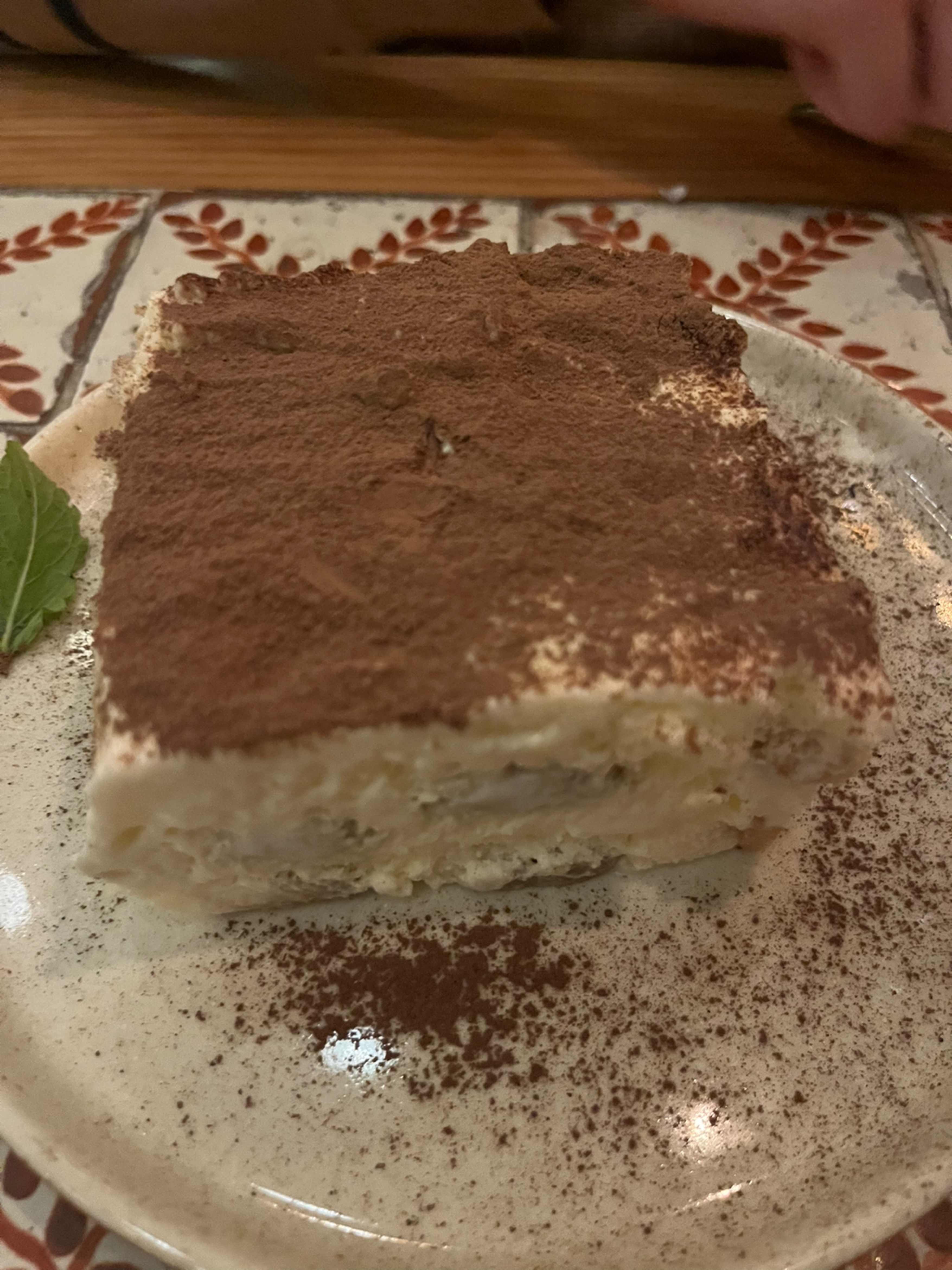 Excellente découverte. Nous avons prit un peu de tout pour partager. Le tiramisu format (grand) , prévoyez d’être 8, il est très bon et très grand. Les serveurs sont vraiment au top et bienveillant. Petit plus pour la table en centre, isolé du reste et très sympa pour un groupe de 12. Nous étions 8 hier soir dedans et c’était parfait , comme l’impression d’être à là maison. +5 🌟