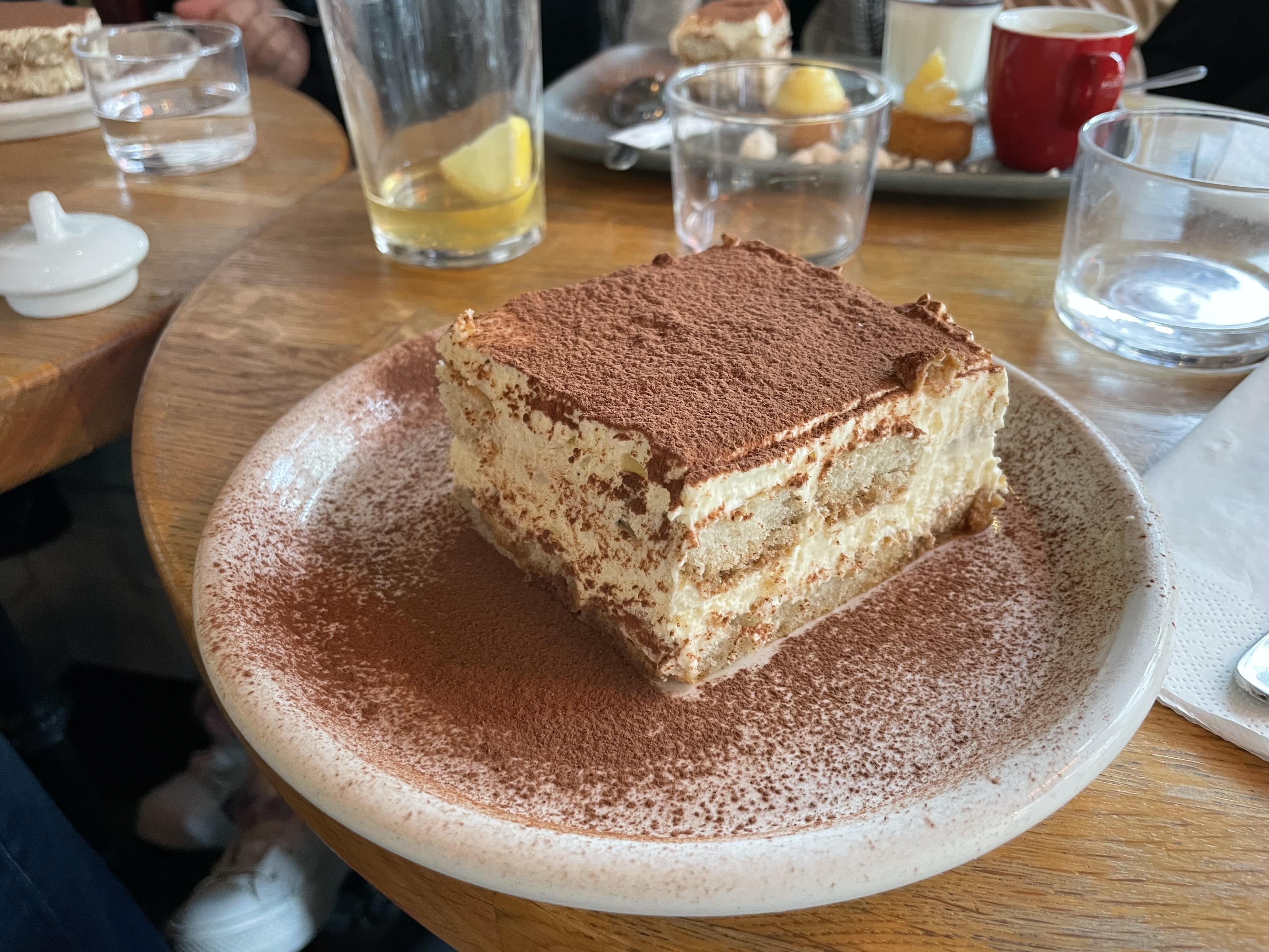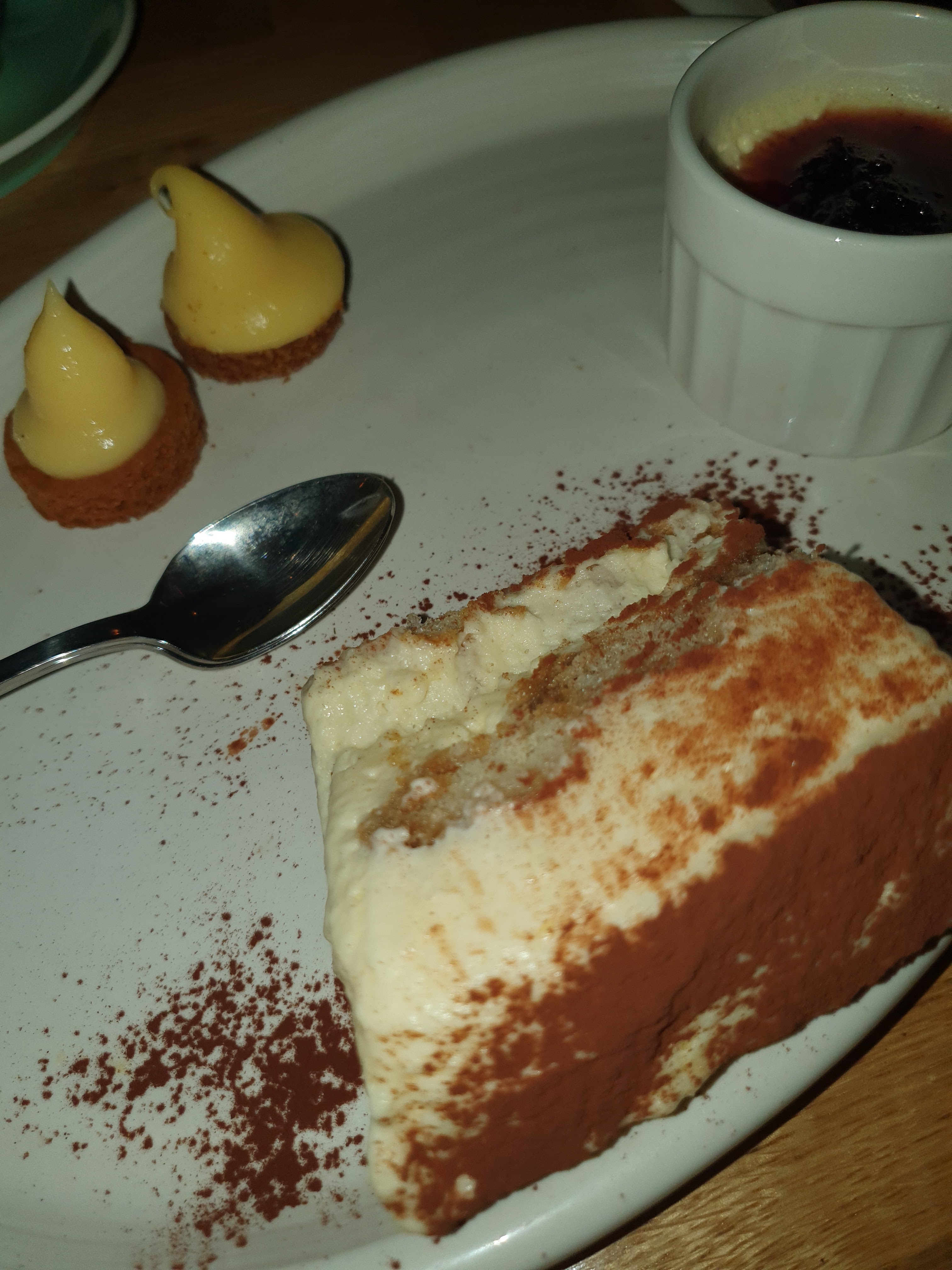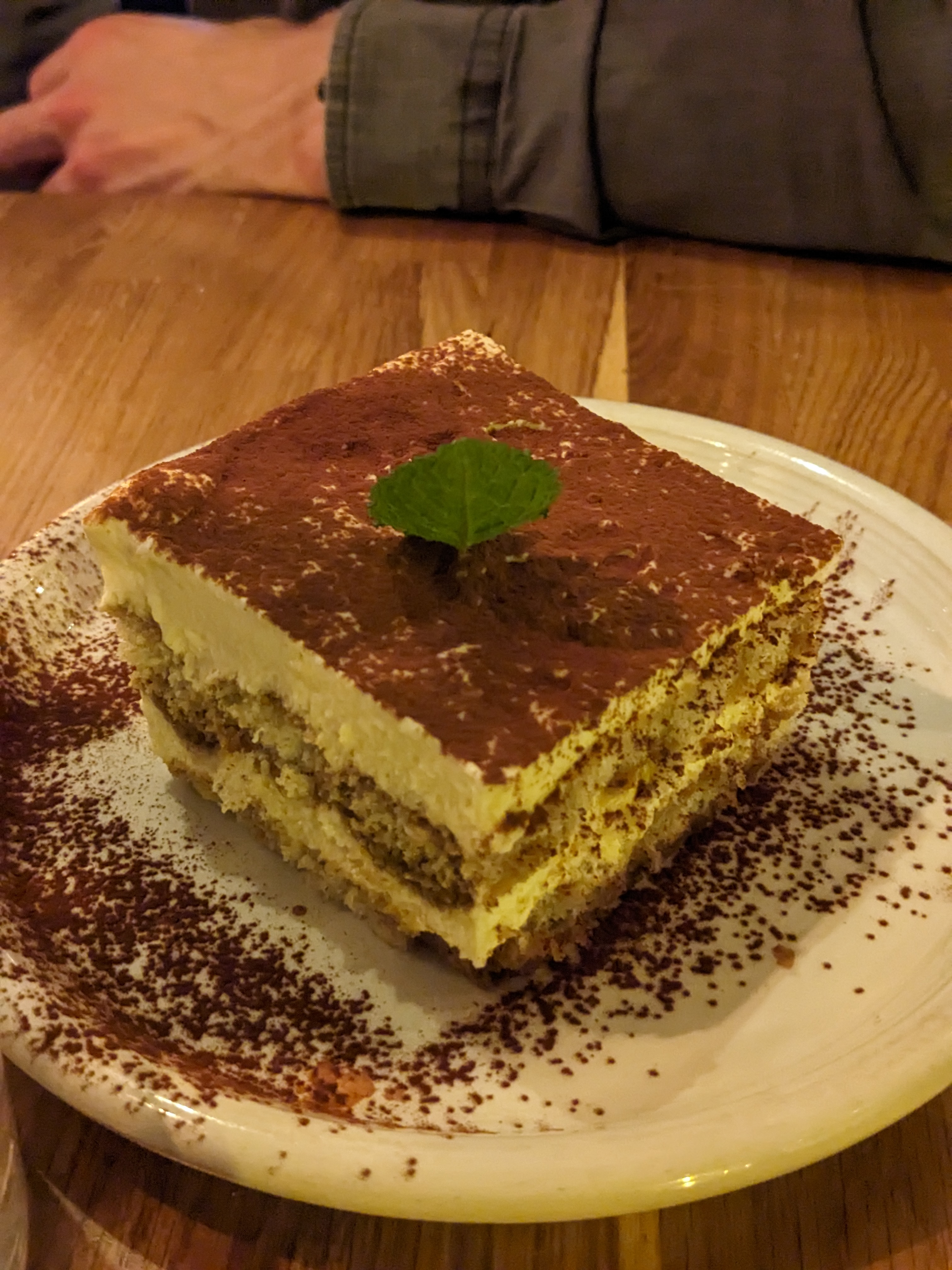 Portions généreuses que ce soit en plat ou dessert (hamais vu un aussi gros tiramisu haha) tout était super bon 🥰