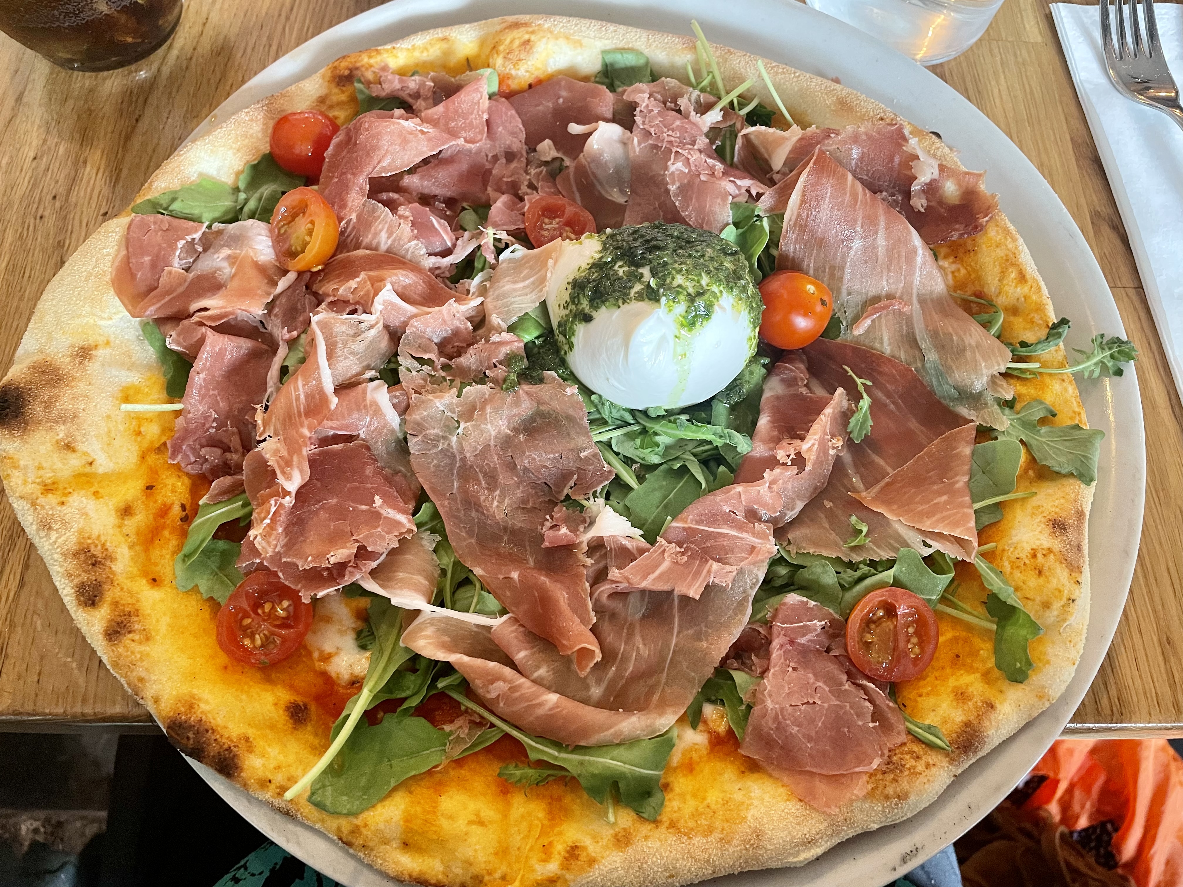 Restaurant très beau, bonne ambiance. Service rapide et sympa. Pour ma part j'ai pris une pizza Parma, elle était savoureuse (et volumineuse 😆). Je me suis régalée, je recommande vivement le restau