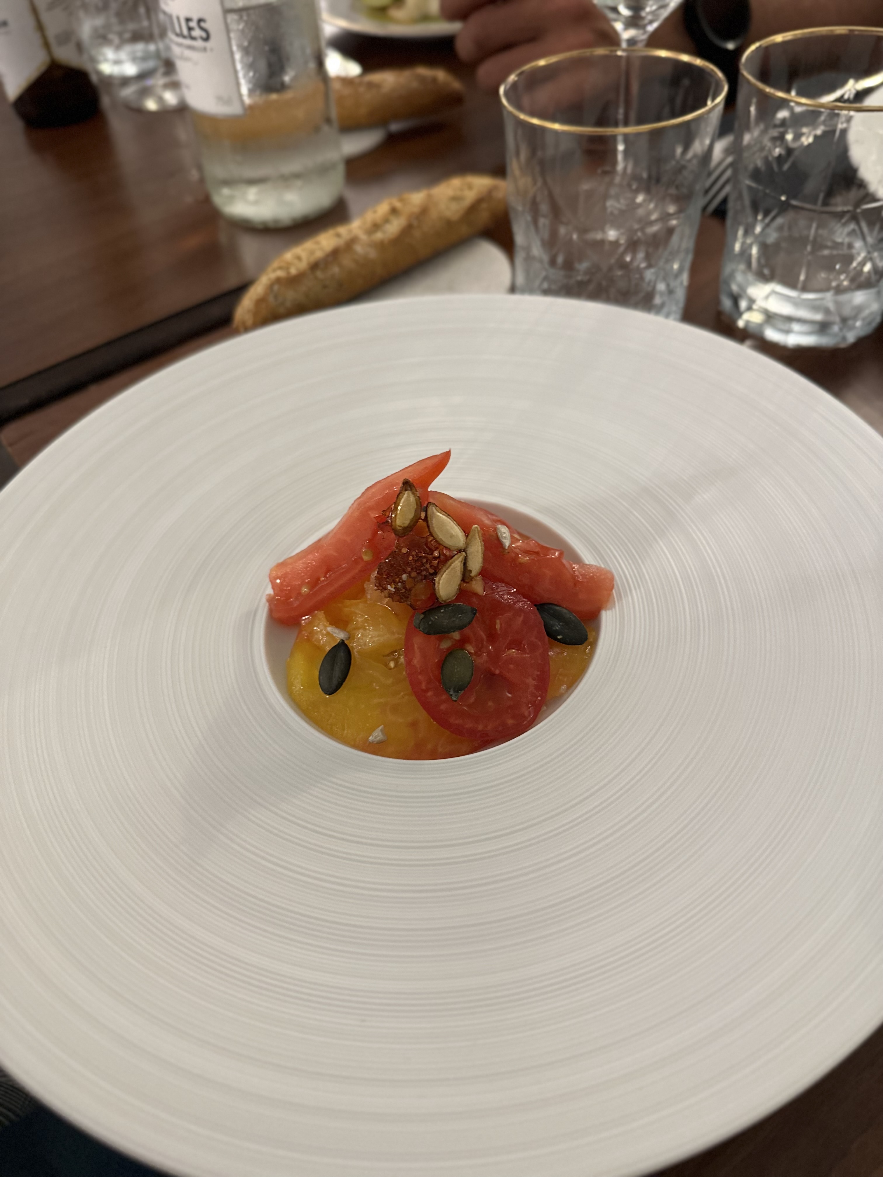Très déçue par cette expérience Déjà pas de prise en compte des aversions alimentaires, un peu dommage pour un resto qui sert un menu unique et qui se veut gastronomique Ensuite, entrée fade , pas d’assaisonnement, quelques légumes crus sur de la ricotta qui rend abondamment de l’eau au cours de la « dégustation ». Lorsque l’on tente d’expliquer a la serveuse nous n’avons aucune réaction. Ensuite le plat, végétarien avec du bacon végétal dont on ne sait pas nous expliquer la composition ; dans le plat, des petits pois sans assaisonnement et toujours servis dans une flaque d’eau. Très déçue de l’expérience, pas de mariage de saveur, des plats très basiques et sans grand intérêt