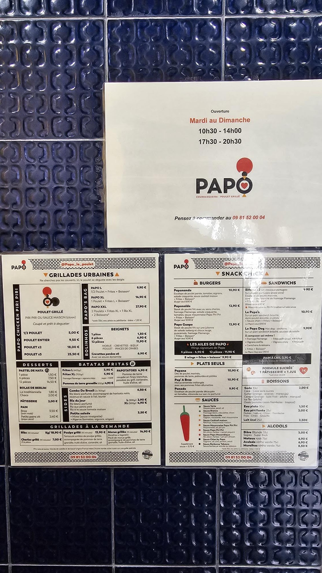 Hier je suis allé pour la première fois chez Papo poulet! J'y suis retourné aujourd'hui.. C'est hyper bon un vrai concept de poulet à la portugaise grillé : des vrais frites ! la qualité , la quantité et le prix !!! Tout y est !! Incroyable que je sois passé à coté de cette adresse à Thiais depuis tout ce temps ; je recommande à 200 %