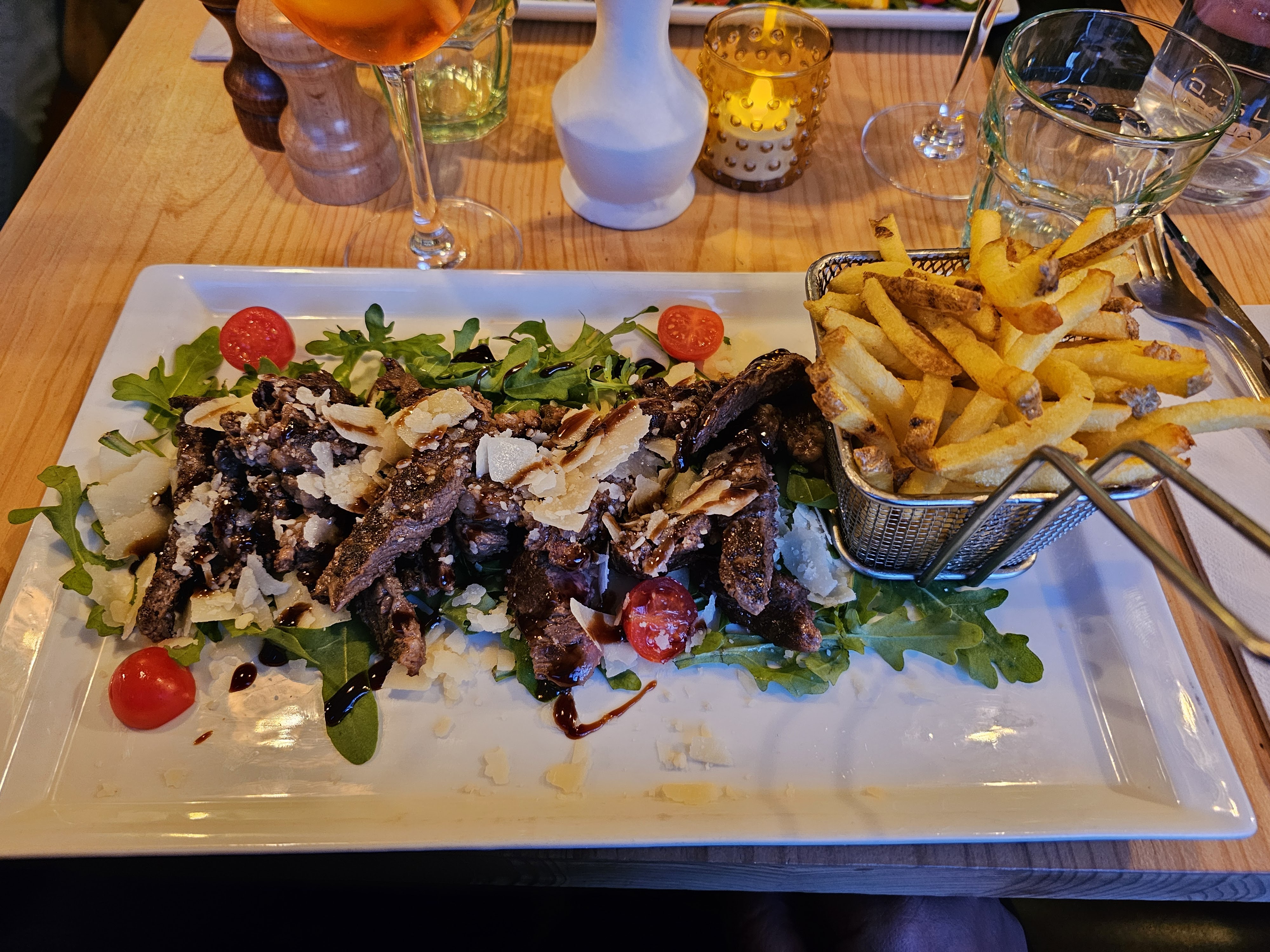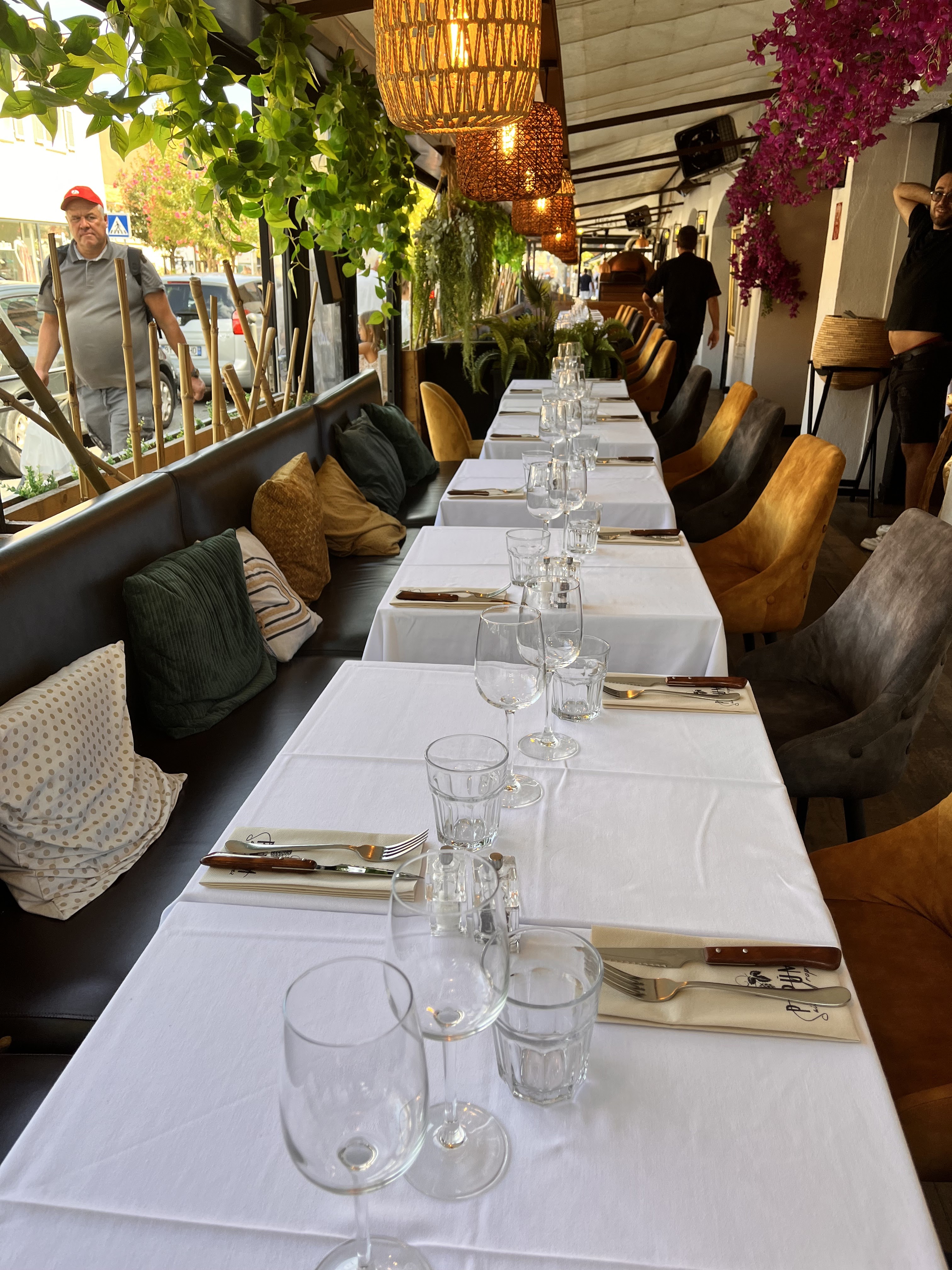 Le service nous a complètement oublié ici. Nous avons dû tout demander au moins deux fois. Le vin est arrivé après le repas. Du pain avec la nourriture. On n'a jamais demandé de voir la carte des desserts, alors j'ai juste payé et je suis parti. La musique était trop forte à l'intérieur même si d'autres clients ont demandé à ce qu'elle soit baissée deux fois. La nourriture était correcte mais rien de spécial.