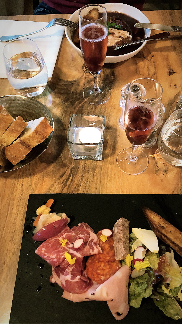 Ce midi repas entre copines. Le cadre est très agréable. Le restaurant est calme, on s'entend parler. La cuisine est bonne et bien réalisée. Un petit bémol sur les plats qui sont arrivés 2 secondes après l'apéro, petit souci de timing. Une mention spéciale aux desserts 👍